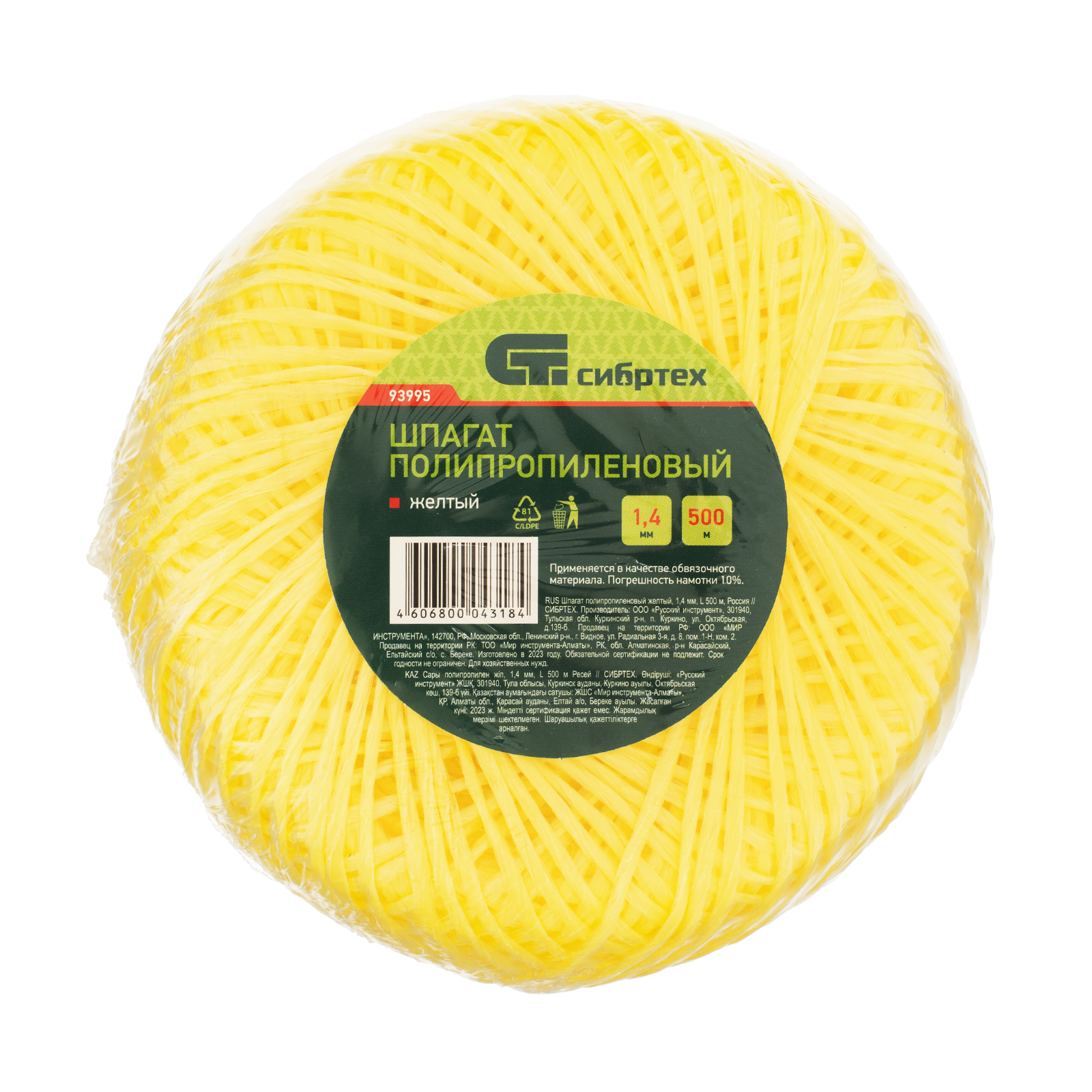 Желтый полипропиленовый шпагат Сибртех 93995 диаметром 1,4 мм и длиной 500 м используется для упаковки грузов, связывания предметов, подвязки растений и решения других задач. Шпагат имеет многониточную свивку и выдерживает разрывную нагрузку 35 кгс. Бобину можно разматывать как с внутренней, так и с наружной стороны. Шпагат будет полезен в сельском хозяйстве, на складе, производстве, а также дома или на даче.