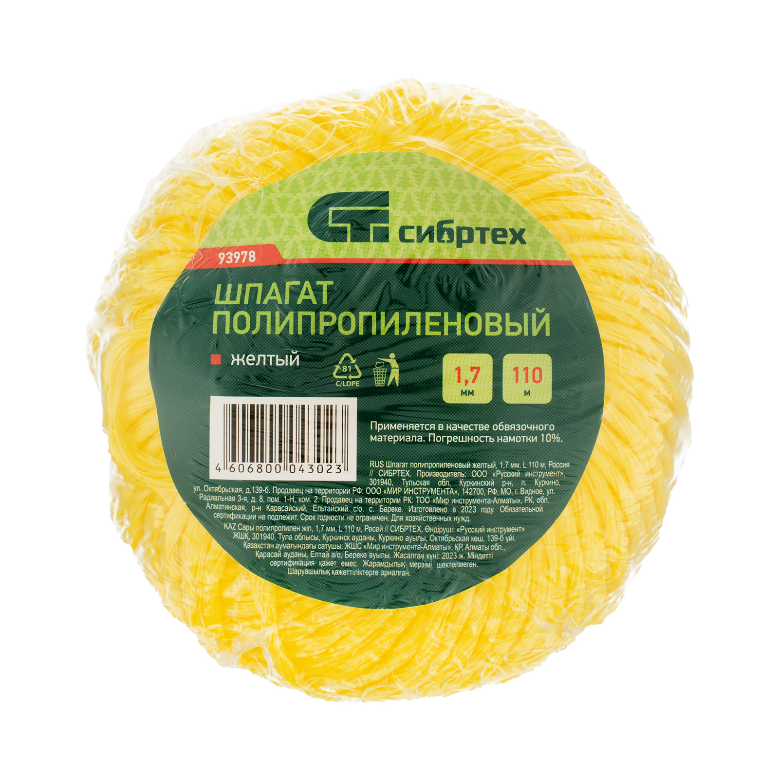 Желтый полипропиленовый шпагат Сибртех 93978 диаметром 1,7 мм и длиной 110 м используется для упаковки грузов, связывания предметов, подвязки растений и решения других задач. Шпагат имеет многониточную свивку и выдерживает разрывную нагрузку 50 кгс. Бобину можно разматывать как с внутренней, так и с наружной стороны. Шпагат будет полезен в сельском хозяйстве, на складе, производстве, а также дома или на даче.