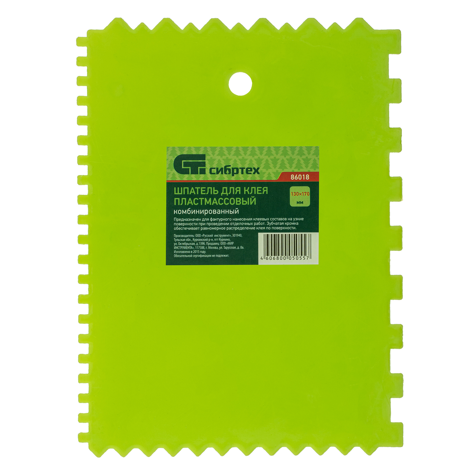 Зубчатый пластмассовый шпатель для клея Сибртех 86018 размером 130 х 170 мм применяется в процессе отделочных и ремонтных работ. Обеспечивает равномерное нанесение плиточного клея на узкие поверхности и надежное соединение с плиткой. Зубчатая рабочая кромка способствует снижению расхода клея.