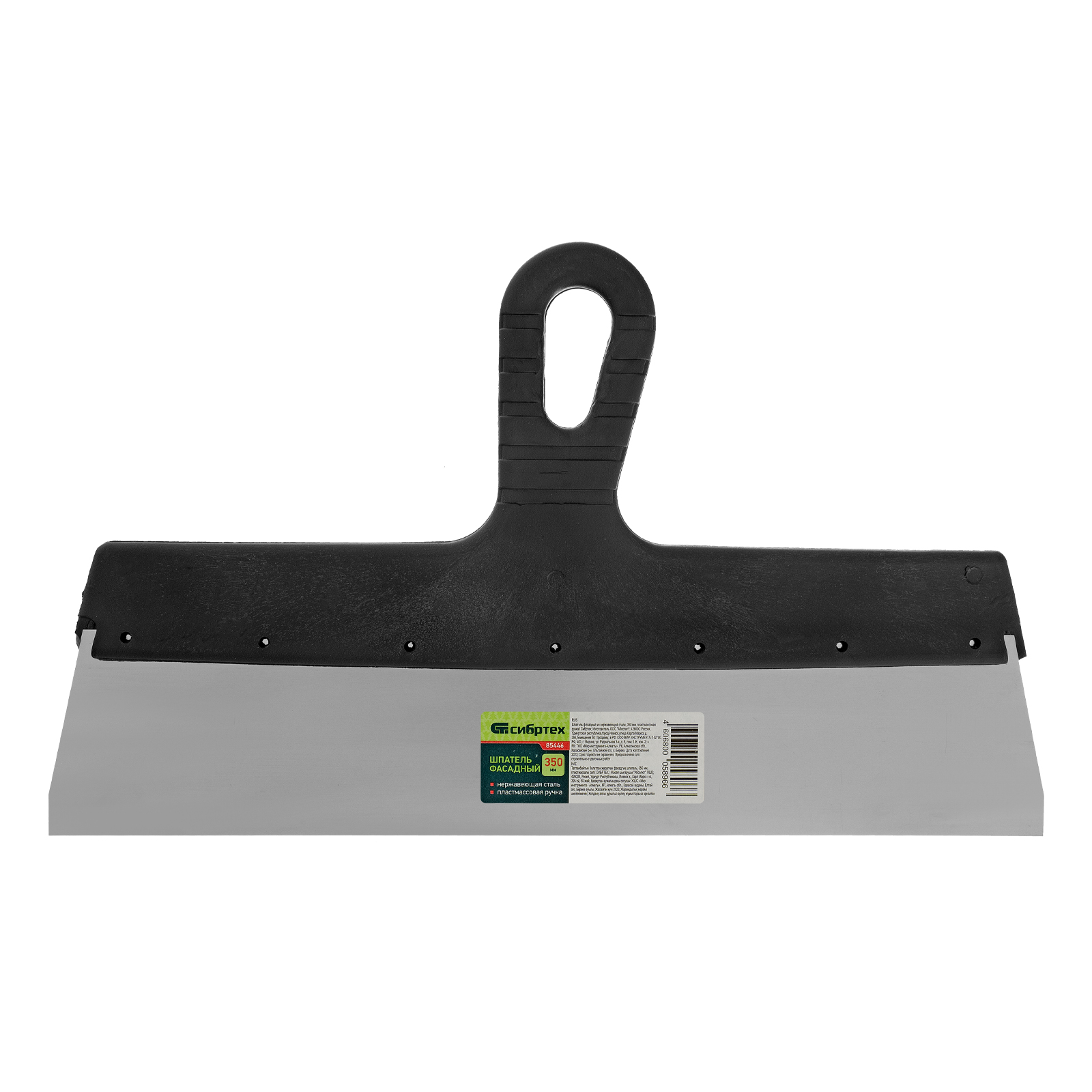 Шпатель фасадный Сибртех 85446 с полотном шириной 350 мм из нержавеющей стали и пластмассовой ручкой рассчитана на нанесение, выравнивание и сглаживание строительных растворов и смесей. Актуальна при проведении ремонтно-отделочных работ, подходит для начинающих и профессиональных мастеров.