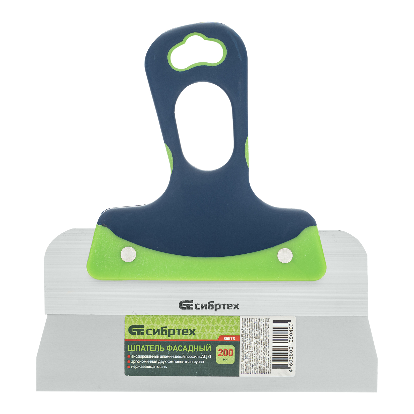 Фасадный шпатель Сибртех 85573 с рабочим полотном шириной 200 мм из нержавеющей стали и 2-компонентной рукояткой предназначен для нанесения, выравнивания и сглаживания отделочных составов, а также проведения других ремонтно-отделочных работ. Инструмент оптимально подходит для заглаживания зашпаклеванных швов.