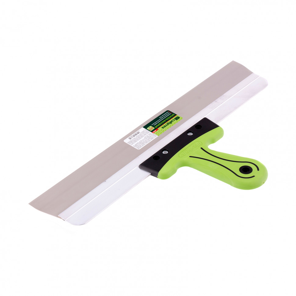 Фасадный шпатель Сибртех 85585 с рабочим полотном шириной 470 мм из нержавеющей стали и 2-компонентной рукояткой предназначен для нанесения, выравнивания и сглаживания отделочных составов, а также проведения других ремонтно-отделочных работ. Инструмент оптимально подходит для заглаживания зашпаклеванных швов.