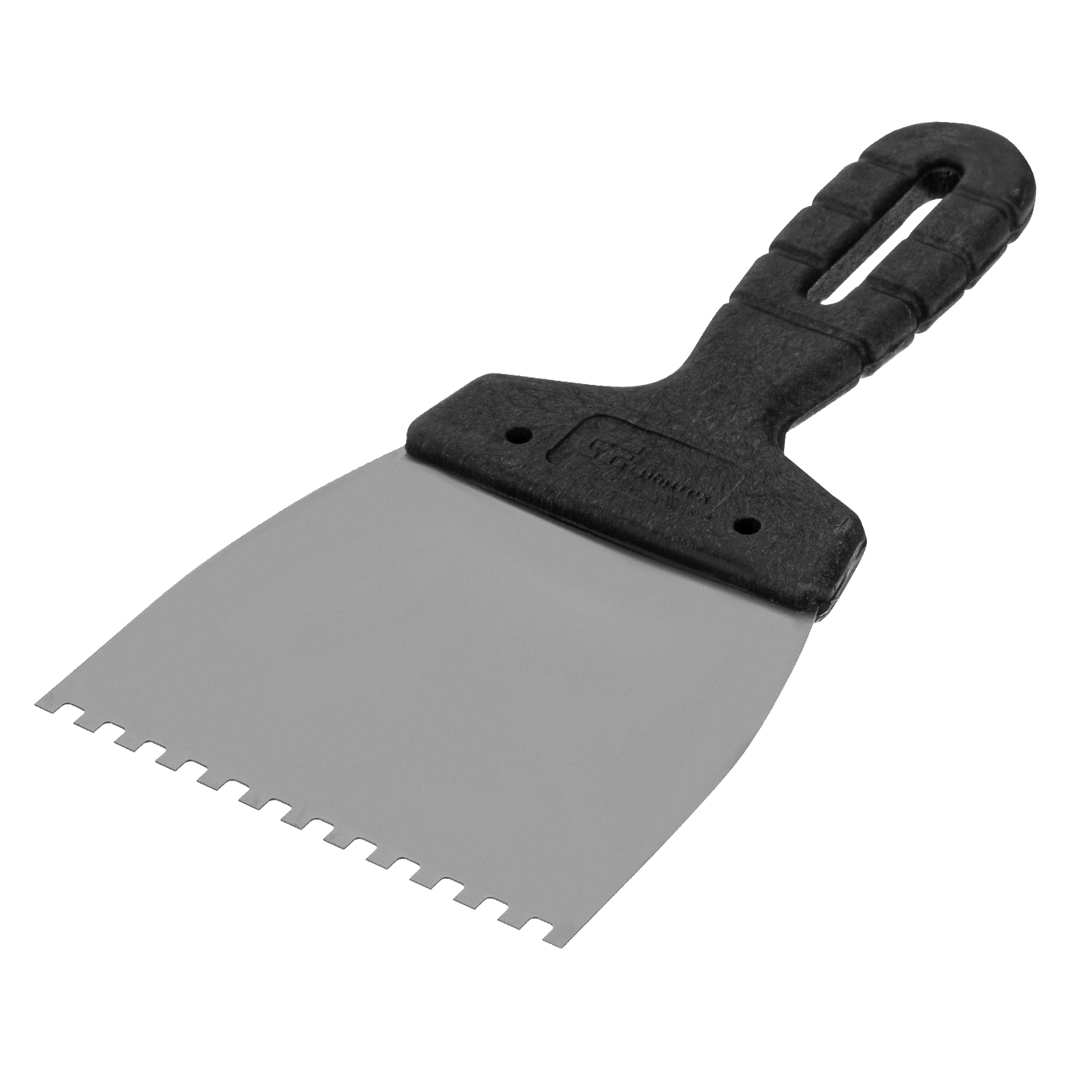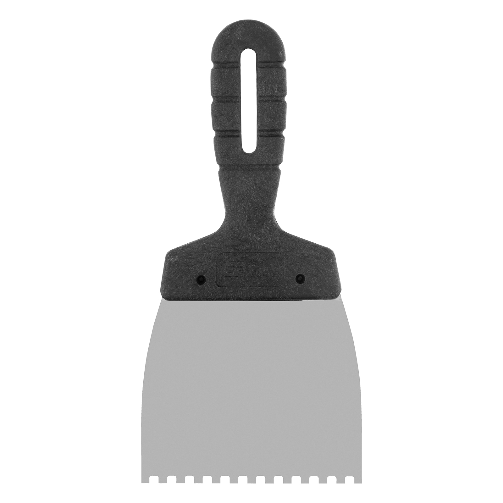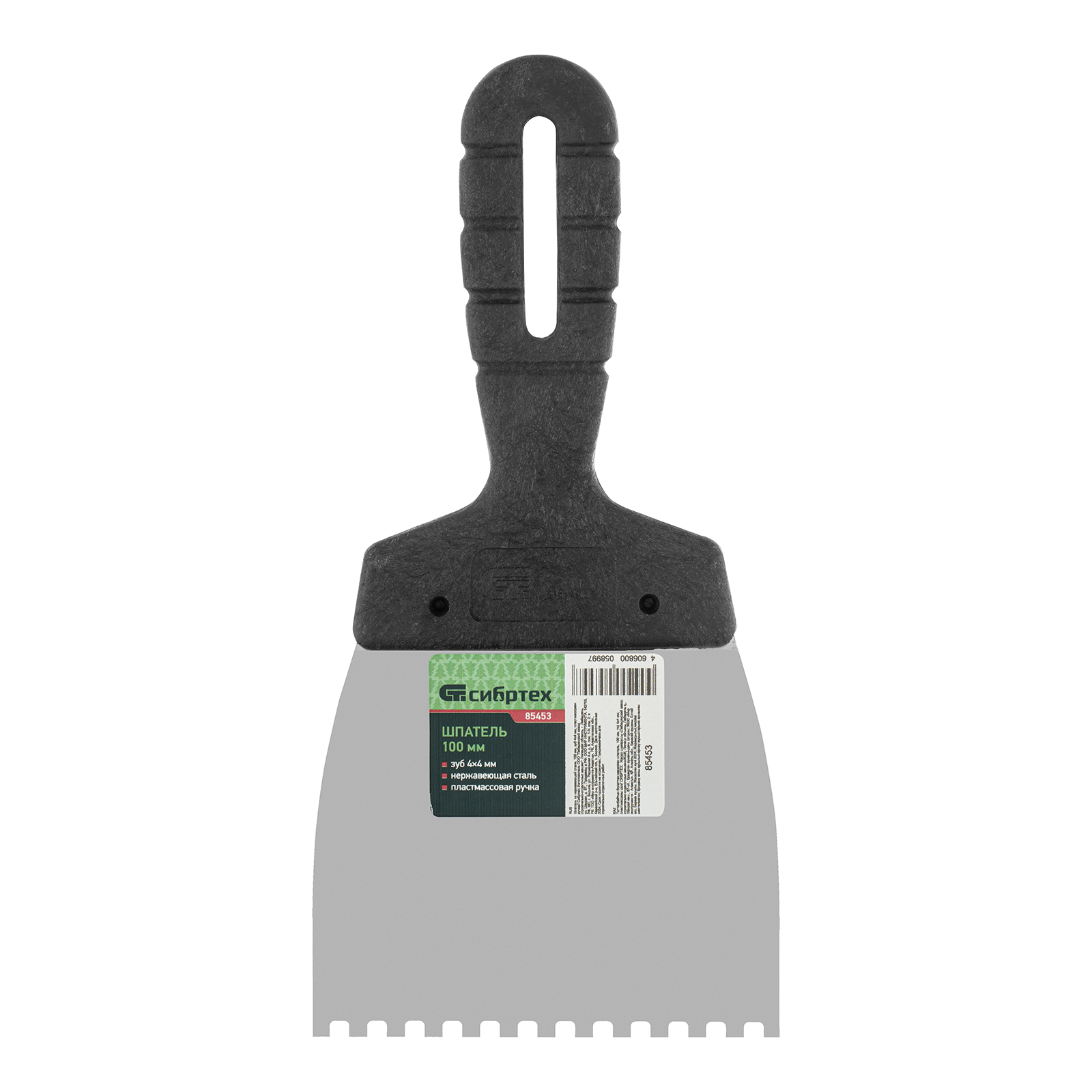 Шпатель Сибртех 85453 из нержавеющей стали, шириной 100 мм, с пластмассовой рукояткой и зубьями 4 х 4 мм, применяется во время проведения работ по укладке плитки, мозаики и т. д. Квадратные зубья облегчают нанесение клеевого состава, позволяя равномерно распределять его по поверхности. Зубья размером 4 х 4 мм рассчитаны на плитку площадью 50-100 см2.