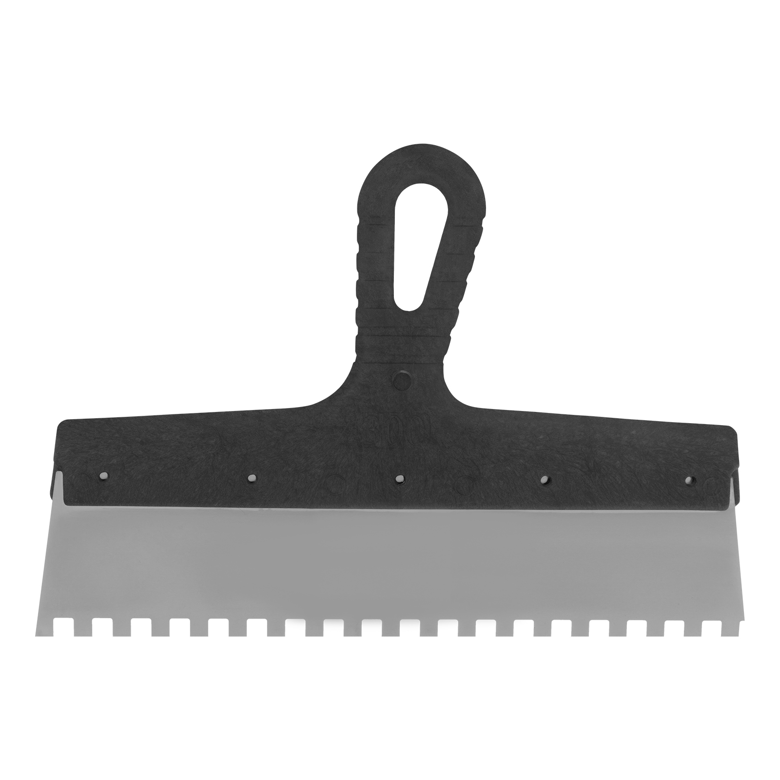 Шпатель Сибртех 85476 из нержавеющей стали, шириной 300 мм, с пластмассовой рукояткой и зубьями 8 х 8 мм, применяется во время проведения работ по укладке плитки, мозаики и т. д. Квадратные зубья облегчают нанесение клеевого состава, позволяя равномерно распределять его по поверхности. Зубья размером 8 х 8 мм рассчитаны на плитку площадью 400-900 см2.
