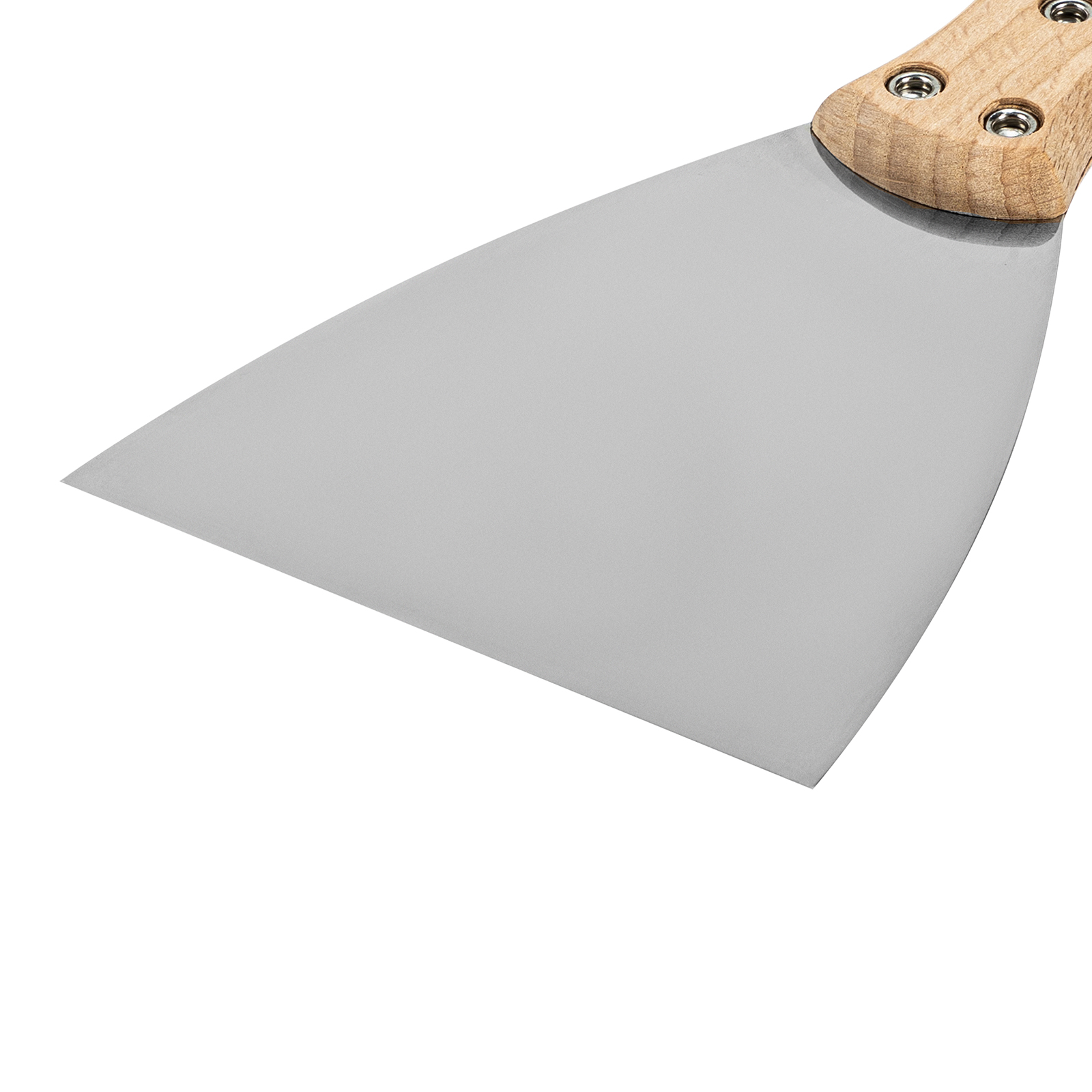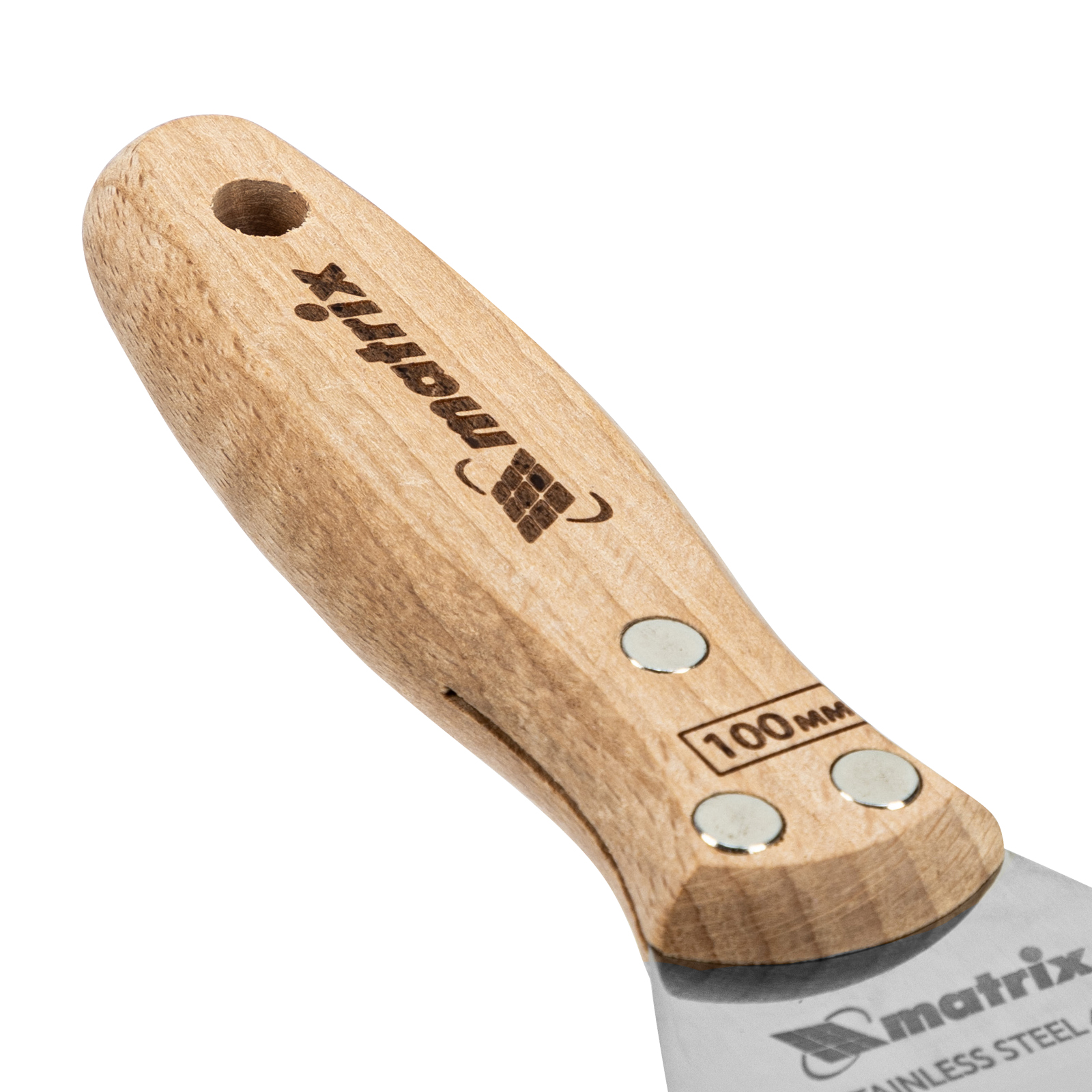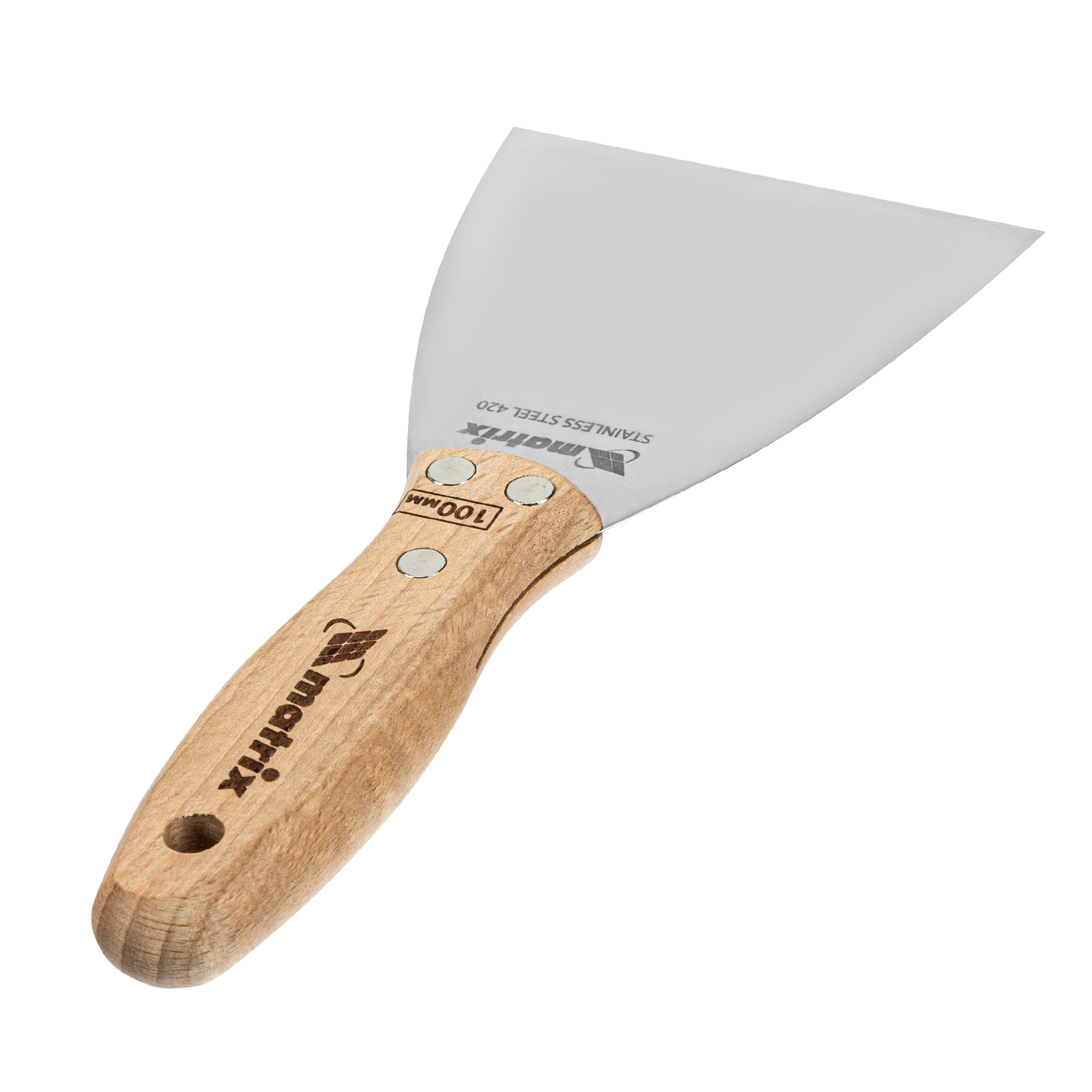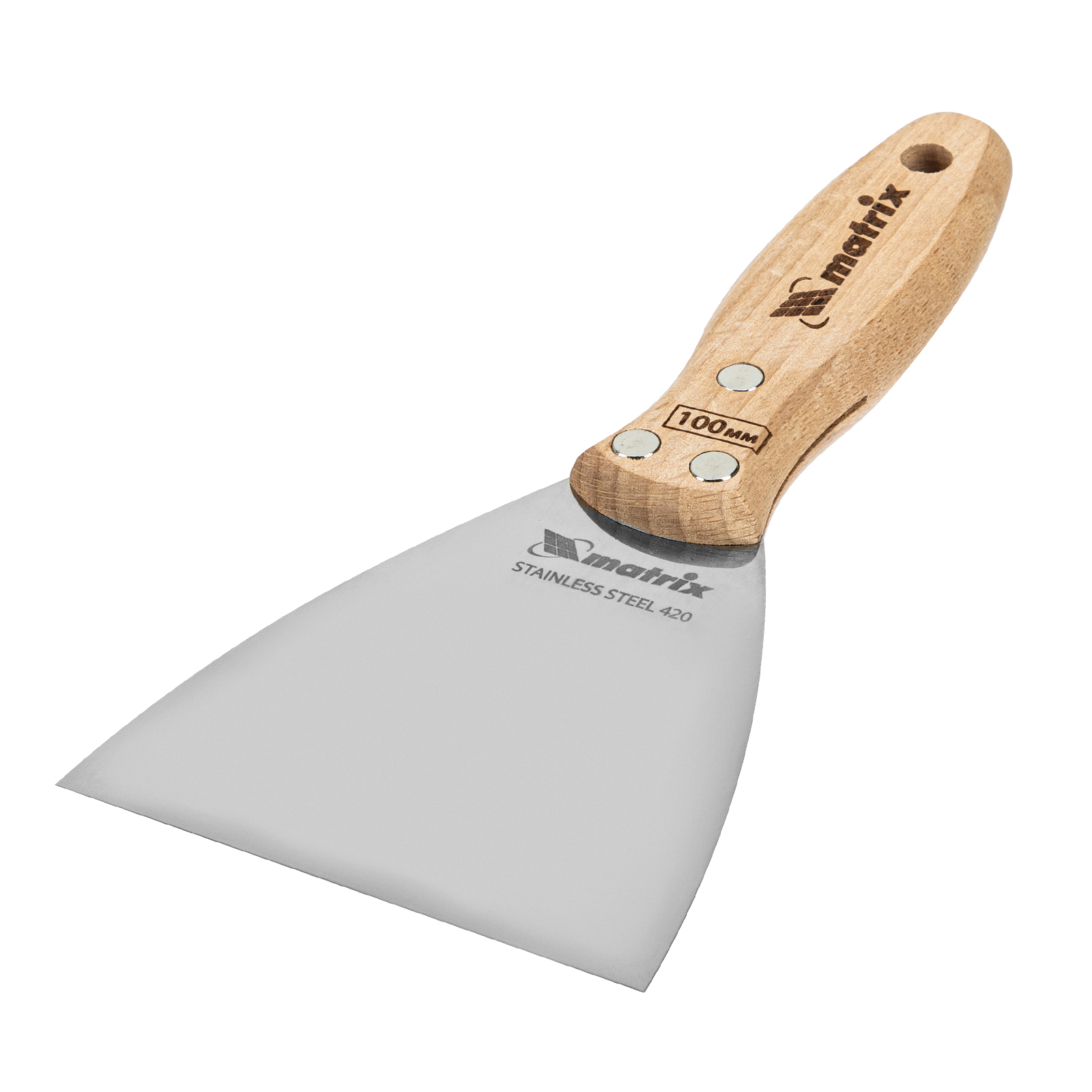 Шпательная лопатка Matrix 85617 с полотном из нержавеющей стали шириной 100 мм и буковой рукояткой предназначена для работы со строительными растворами. Применяется для нанесения различных смесей на поверхности, шпатлевания трещин и неровностей.
