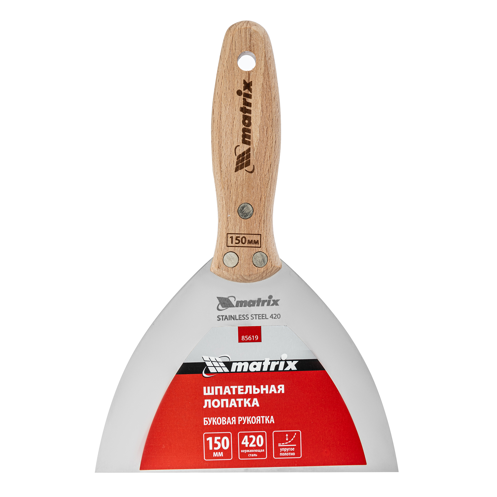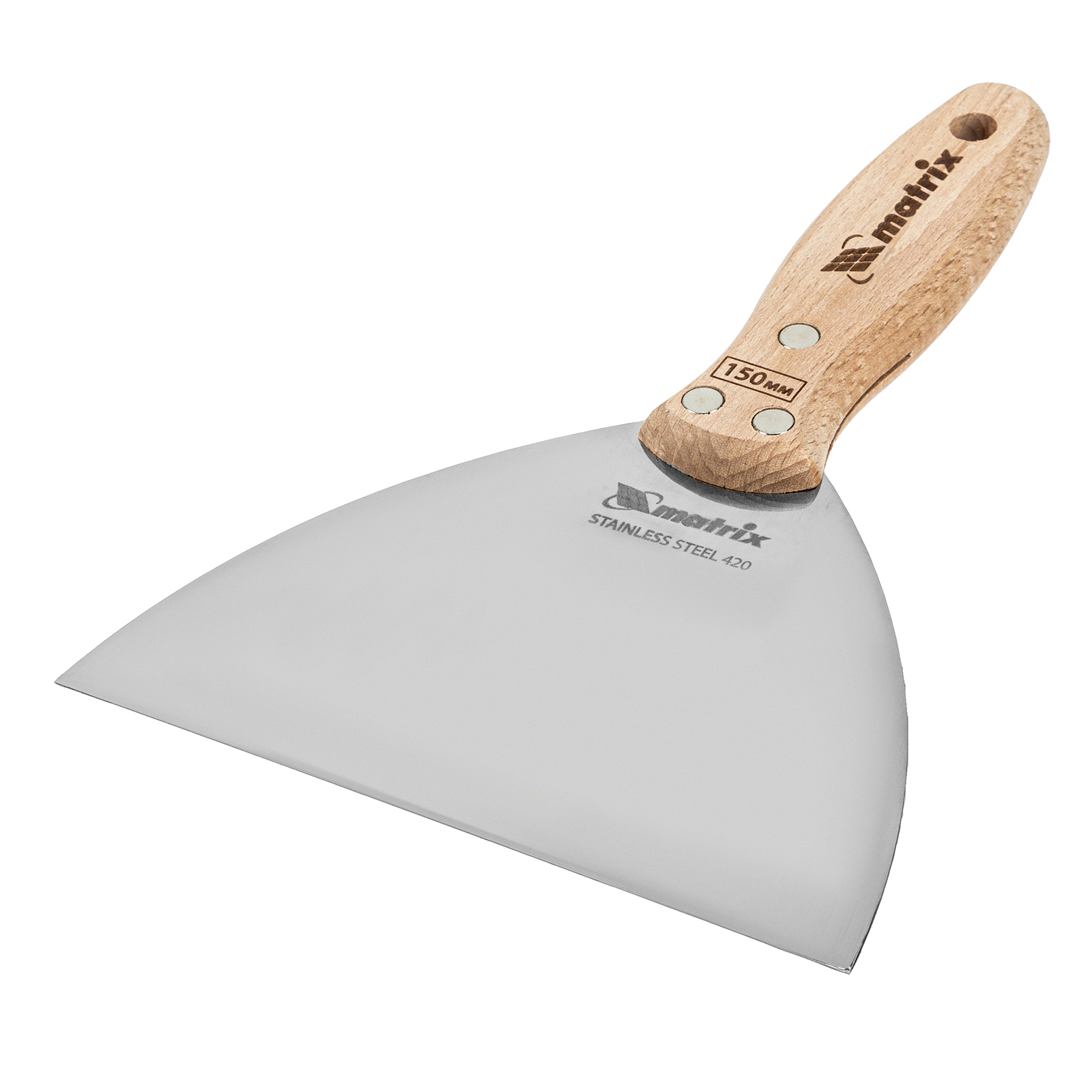 Шпательная лопатка Matrix 85619 с полотном из нержавеющей стали шириной 150 мм и буковой рукояткой предназначена для работы со строительными растворами. Применяется для нанесения различных смесей на поверхности, шпатлевания трещин и неровностей.