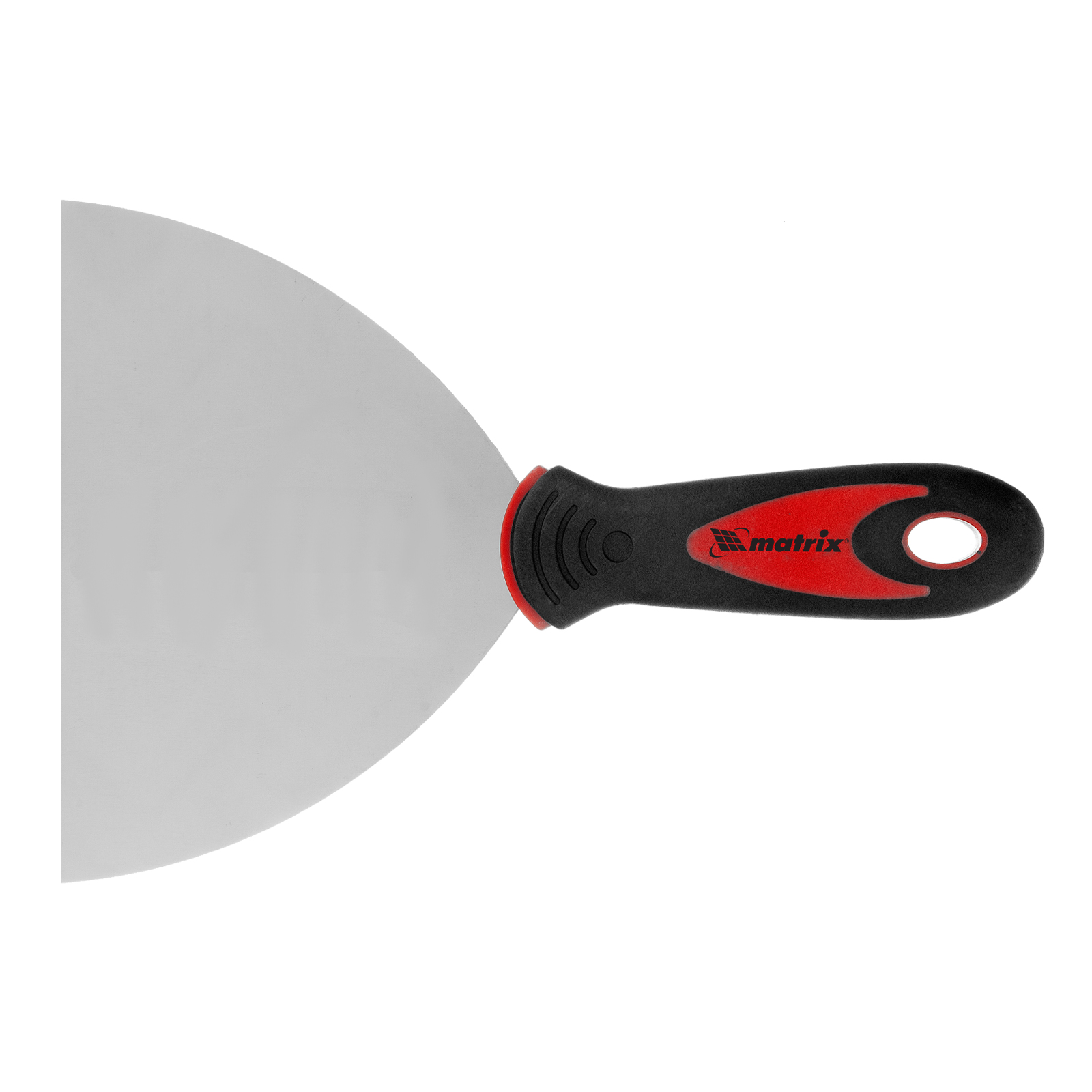 Шпательная лопатка из нержавеющей стали Matrix 85515 шириной 150 мм, с двухкомпонентной рукояткой, предназначена для нанесения и выравнивания строительных смесей, шпаклевания швов, заполнения трещин, удаления старых обоев. За счет компактных размеров инструмент подходит для корректировки мелких трещин и неровностей.