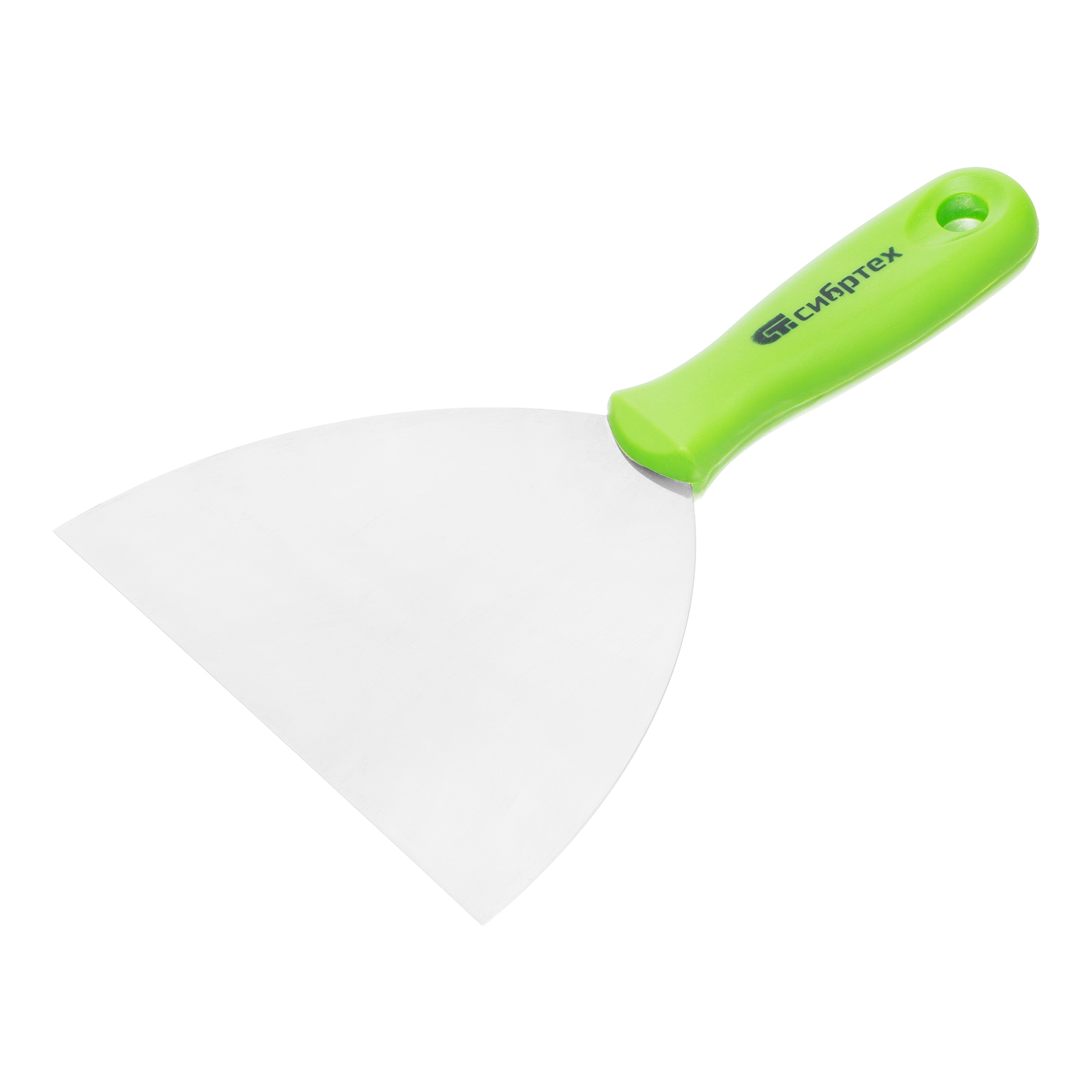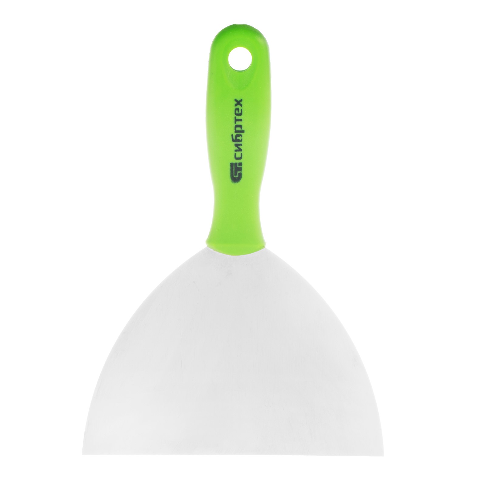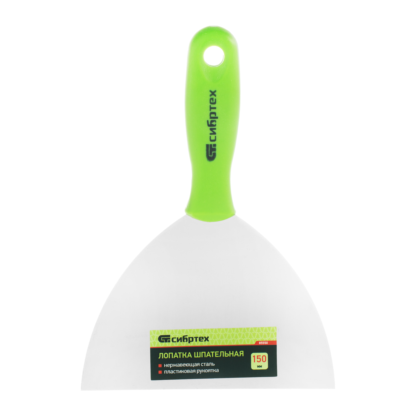 Шпательная лопатка Сибртех 85550 с полотном шириной 150 мм из нержавеющей стали, с пластмассовой ручкой, используется для нанесения, выравнивания и разглаживания строительных растворов и смесей. Пригодится для проведения ремонтно-отделочных работ, подходит для начинающих и профессиональных мастеров.