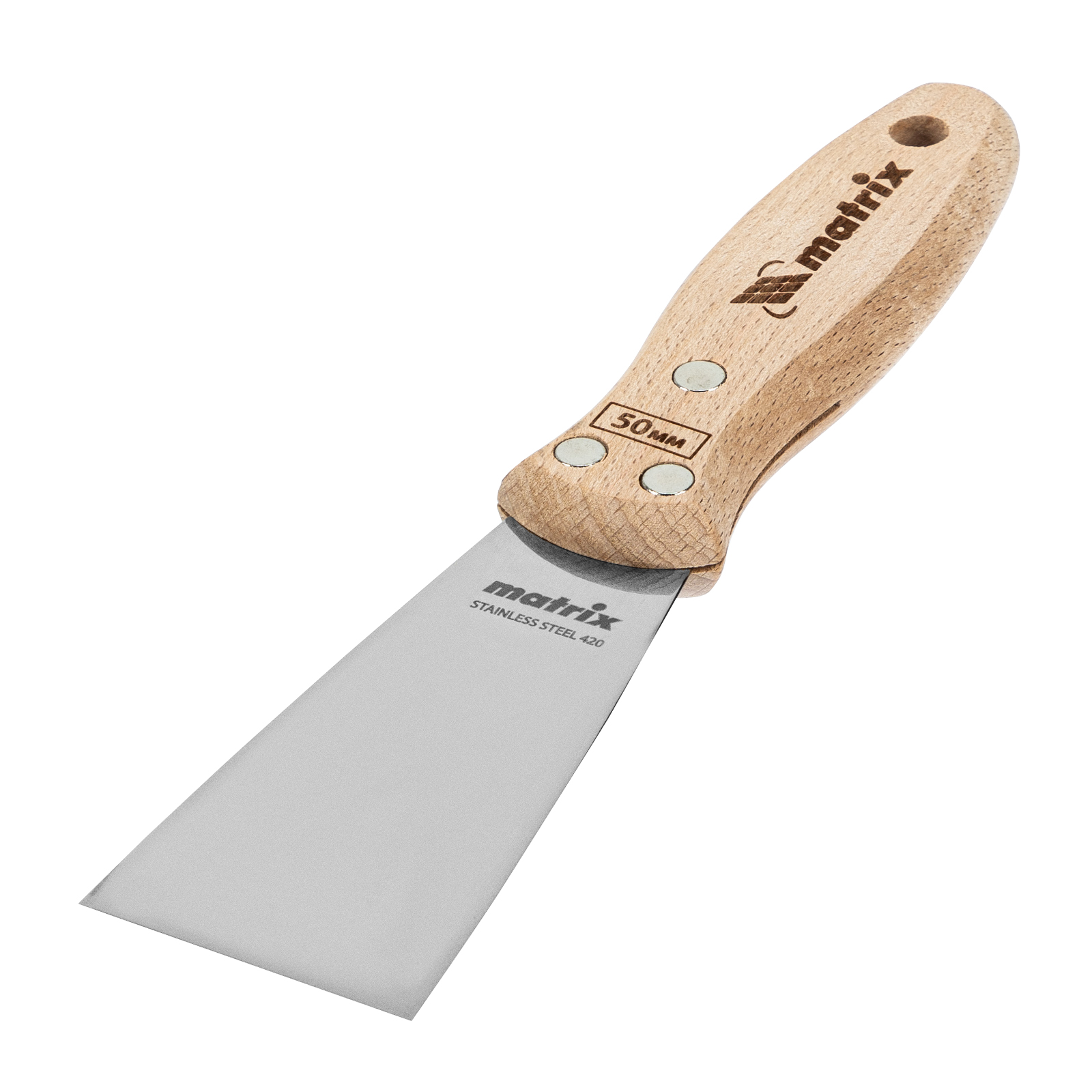 Шпательная лопатка Matrix 85611 с полотном из нержавеющей стали шириной 50 мм и буковой рукояткой предназначена для работы со строительными растворами. Применяется для нанесения различных смесей на поверхности, шпатлевания трещин и неровностей.