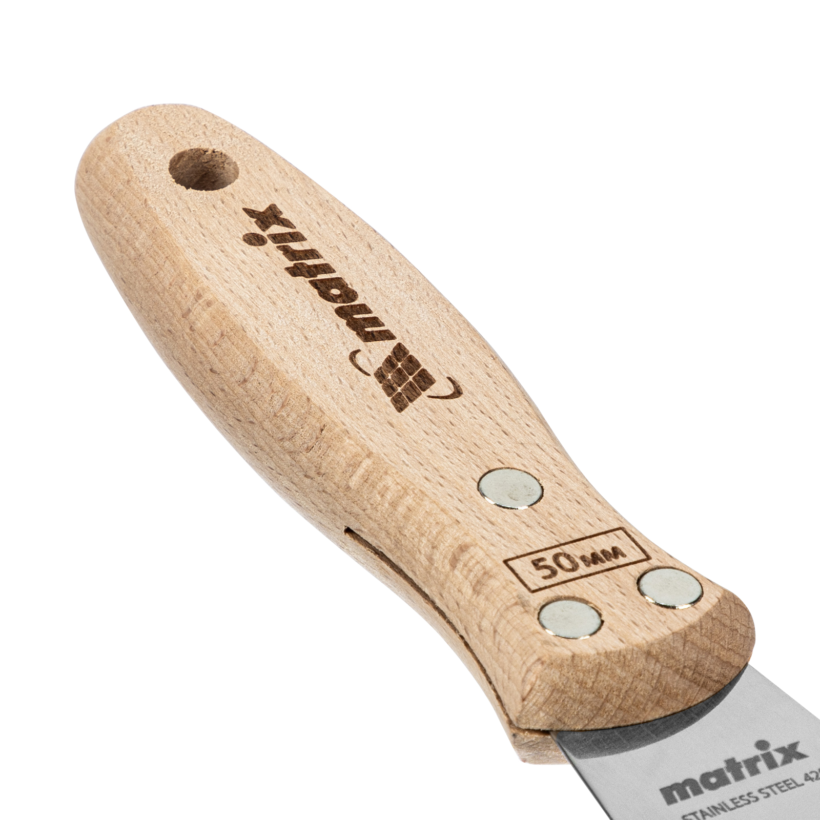 - Удобное хранение — в рукоятке предусмотрено отверстие для подвешивания шпательной лопатки.