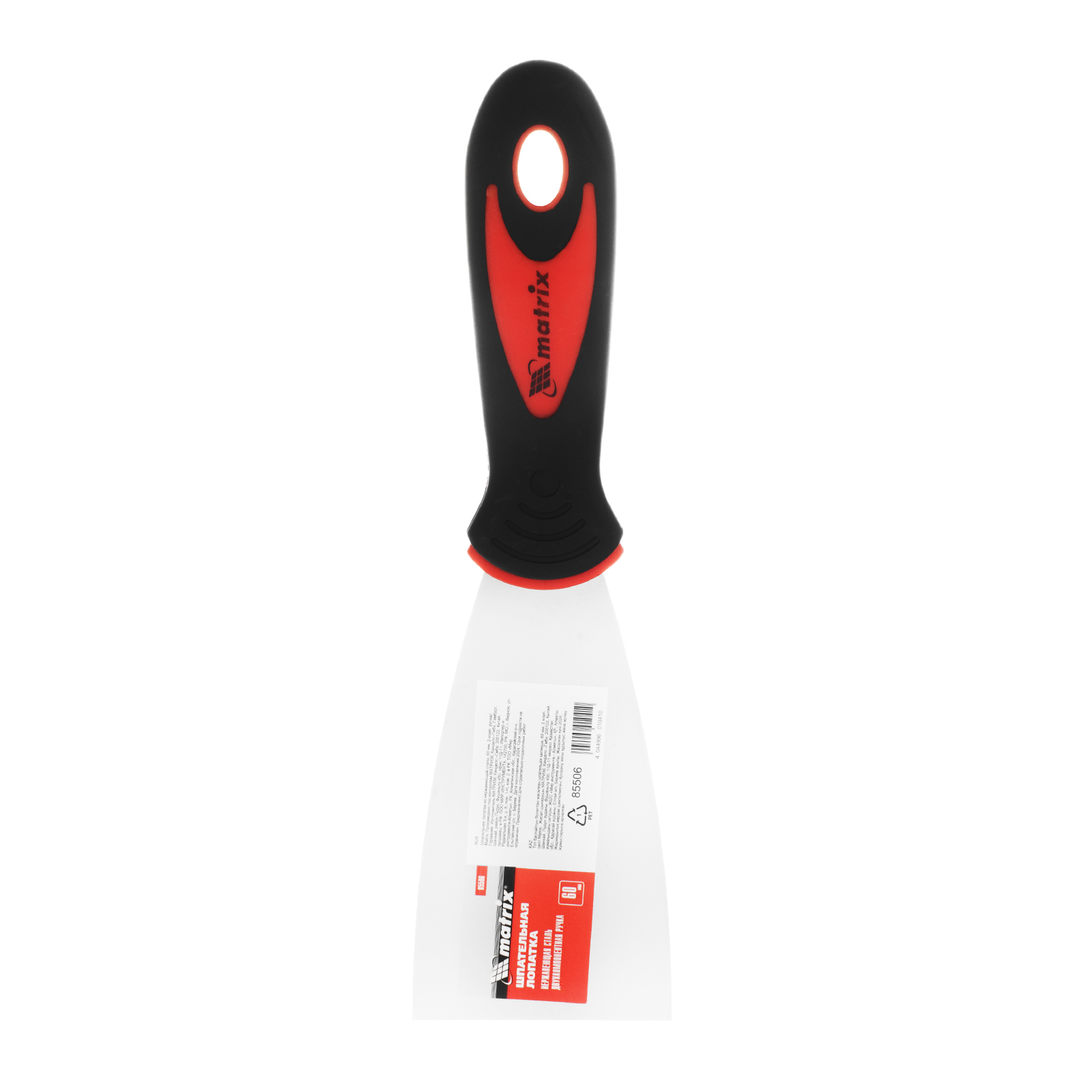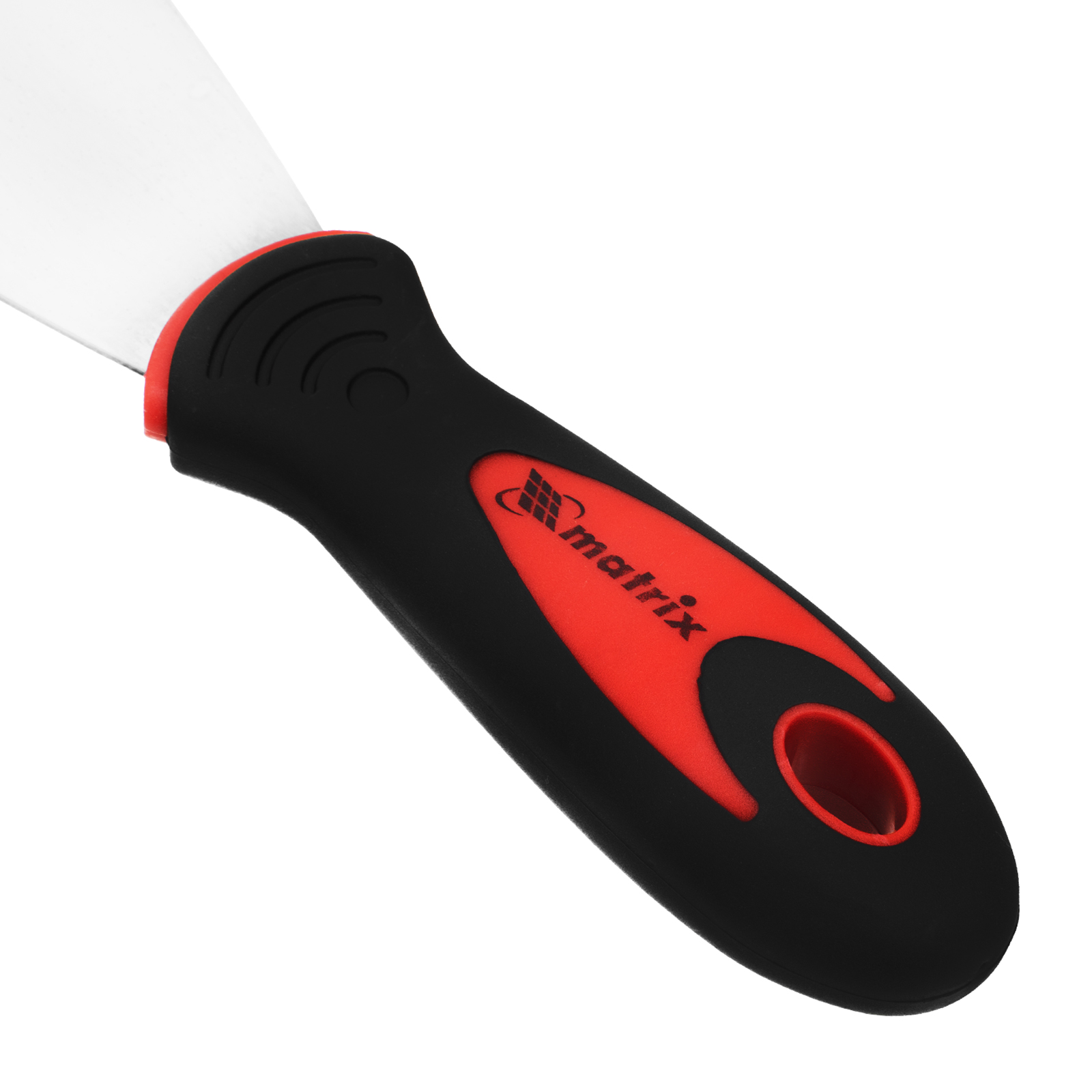 Шпательная лопатка из нержавеющей стали Matrix 85506 шириной 60 мм, с двухкомпонентной рукояткой, предназначена для нанесения и выравнивания строительных смесей, шпаклевания швов, заполнения трещин, удаления старых обоев. За счет компактных размеров инструмент подходит для корректировки мелких трещин и неровностей.