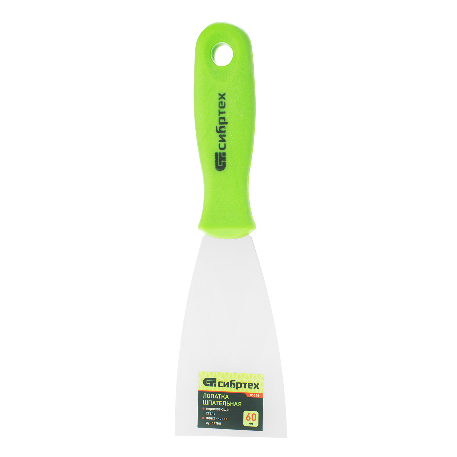 Шпательная лопатка Сибртех 85546 с полотном шириной 60 мм из нержавеющей стали, с пластмассовой ручкой, используется для нанесения, выравнивания и разглаживания строительных растворов и смесей. Пригодится для проведения ремонтно-отделочных работ, подходит для начинающих и профессиональных мастеров.