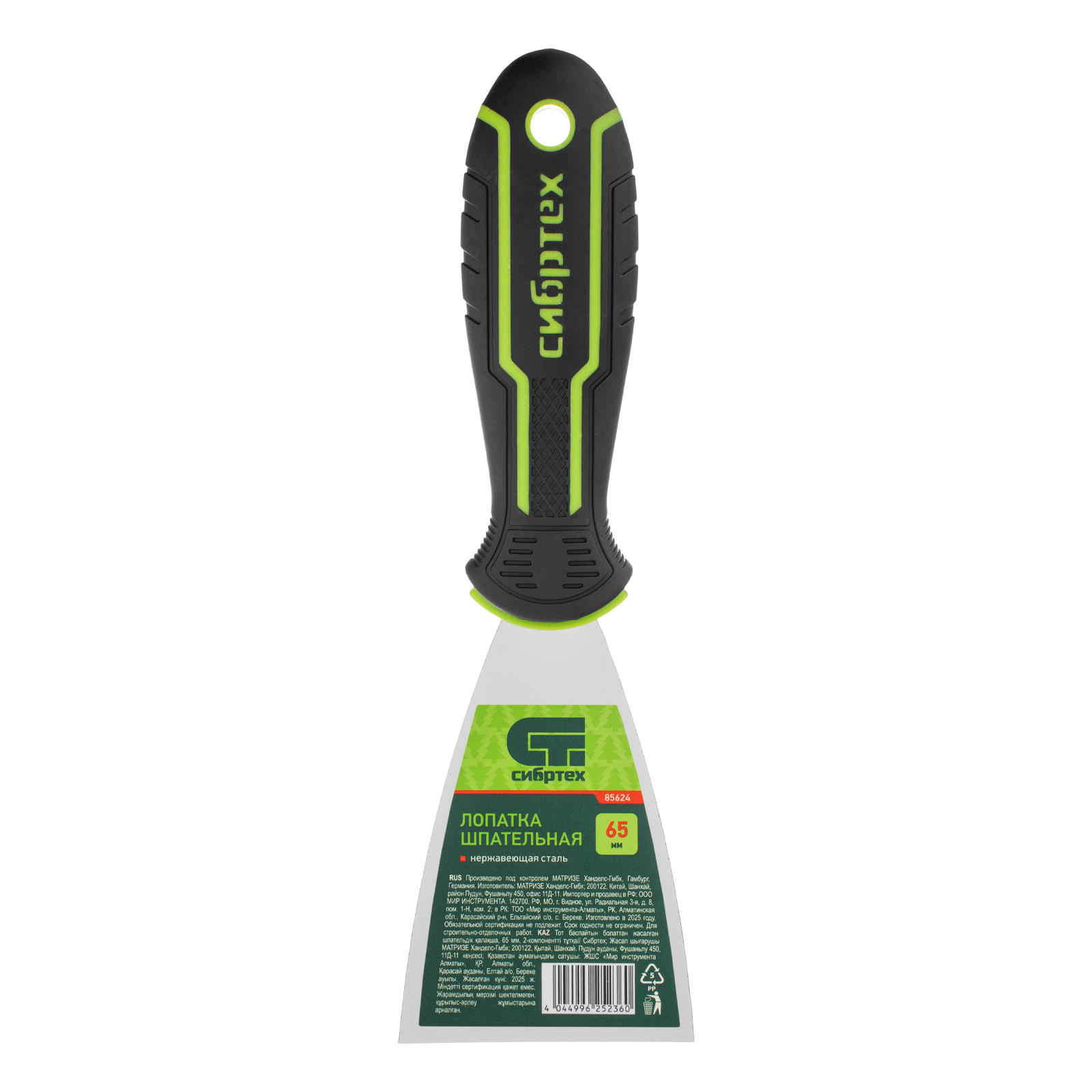 <p>Шпательная лопатка Сибртех 85624 с полотном шириной 65 мм, изготовленным из нержавеющей стали, применяется для работы со строительными растворами: смешивания, нанесения и разравнивания шпатлевок, штукатурок, клеевых составов, затирок. Подходит для заделки трещин, устранения неровностей. Инструмент будет полезен при проведении строительных, ремонтных и отделочных работ.</p><h2>Преимущества</h2><ul><li>Долговечность — полотно из нержавеющей стали обладает необходимой прочностью и устойчиво к коррозии.</li><li>Деформационная стойкость — можно работать длительное время с высокими нагрузками без риска поломки инструмента.</li><li>Эргономичность — двухкомпонентную рукоятку с рельефной поверхностью удобно держать в руке.</li><li>Удобное хранение — в рукоятке предусмотрено отверстие для подвешивания на крючок.</li></ul>
