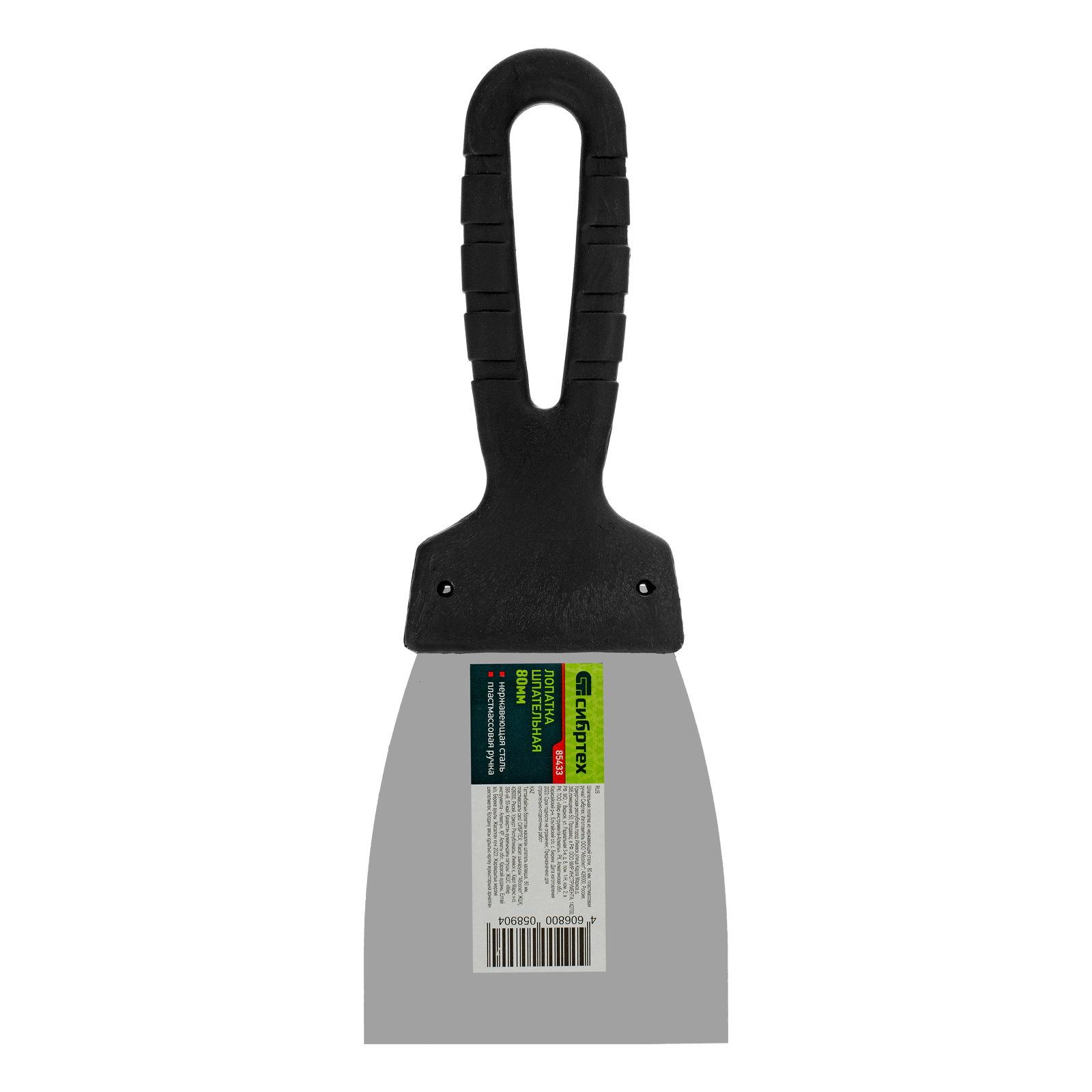 Шпательная лопатка Сибртех 85433 с полотном шириной 80 мм из нержавеющей стали, с пластмассовой ручкой, используется для нанесения, выравнивания и разглаживания строительных растворов и смесей. Пригодится для проведения ремонтно-отделочных работ, подходит для начинающих и профессиональных мастеров.