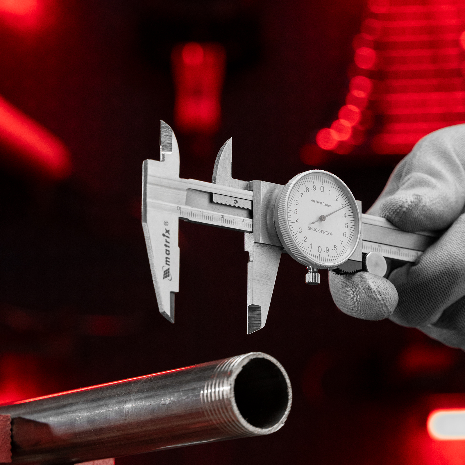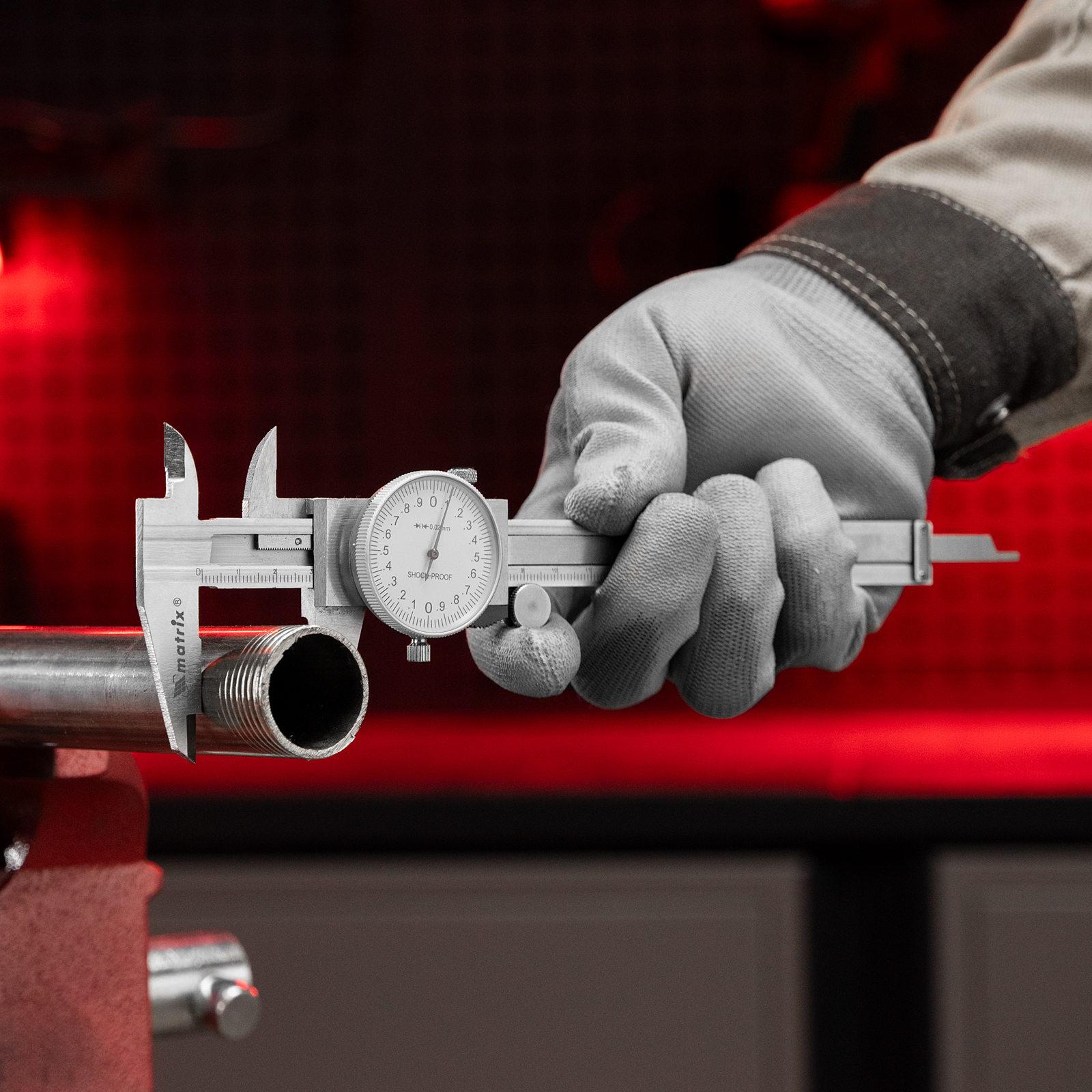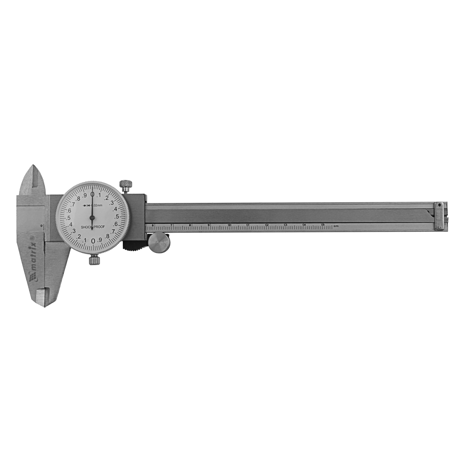 Стрелочный штангенциркуль Matrix 31601 длиной 150 мм — измерительный инструмент для определения внешних и внутренних размеров деталей. Круговая шкала со стрелочной индикацией упрощает считывание показаний, что позволяет сократить время измерения. Штангенциркуль обеспечивает точные результаты — цена деления круговой шкалы 0,02 мм, погрешность составляет ±0,02 мм при величине измерения до 100 мм, и ±0,03 мм при величине измерения более 100 мм. Инструмент пригодится в строительстве, на производстве, в ремонтной мастерской, а также дома или в гараже.