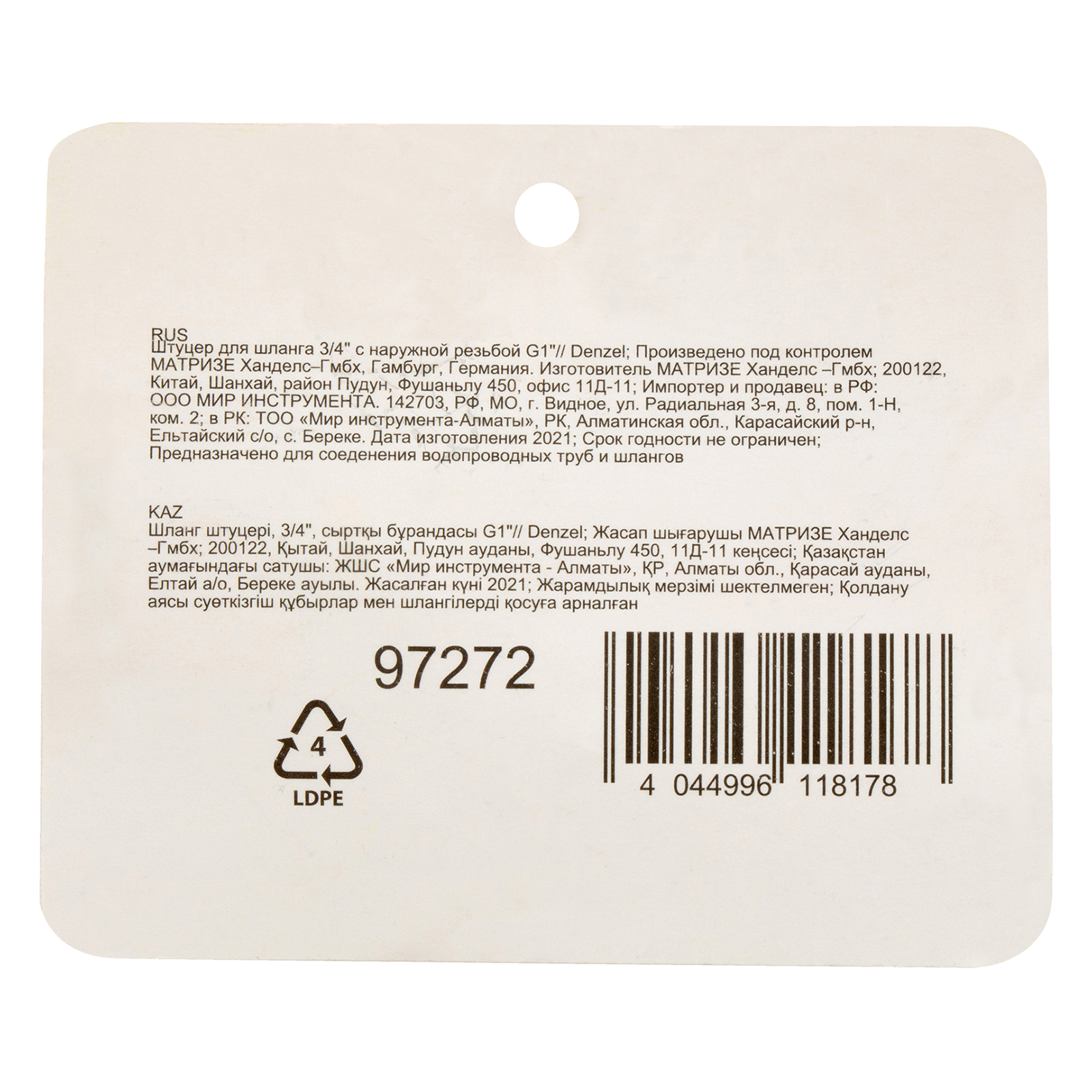 Штуцер Denzel 97272 с наружной резьбой G1 предназначен для плотного соединения насоса или насосной станции с садовым шлангом диаметром 3/4 дюйма. Используется для организации системы откачки воды или полива на дачном участке.
