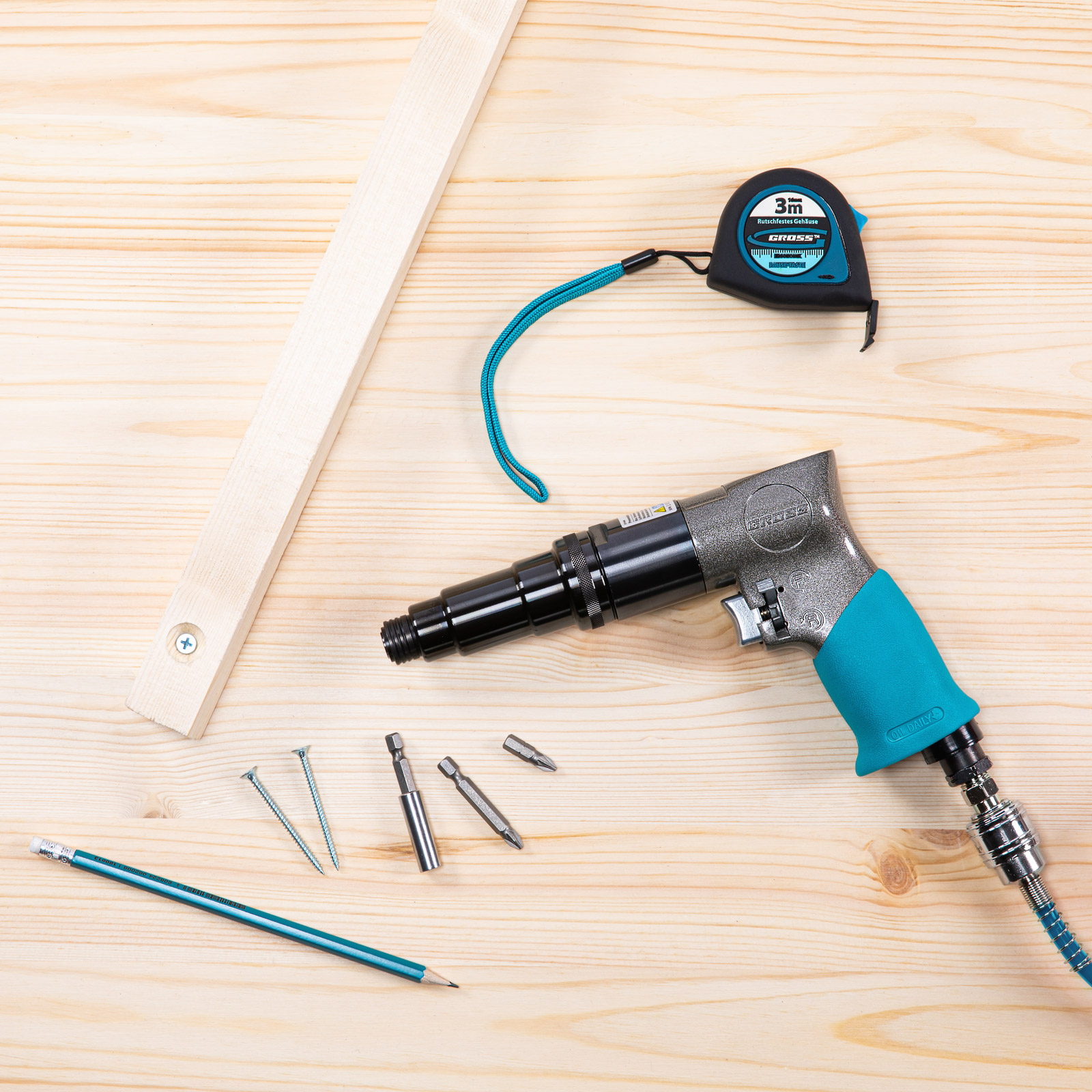 - Быстросъемное соединение — шуруповерт легко подключается к компрессору, что экономит время мастера.