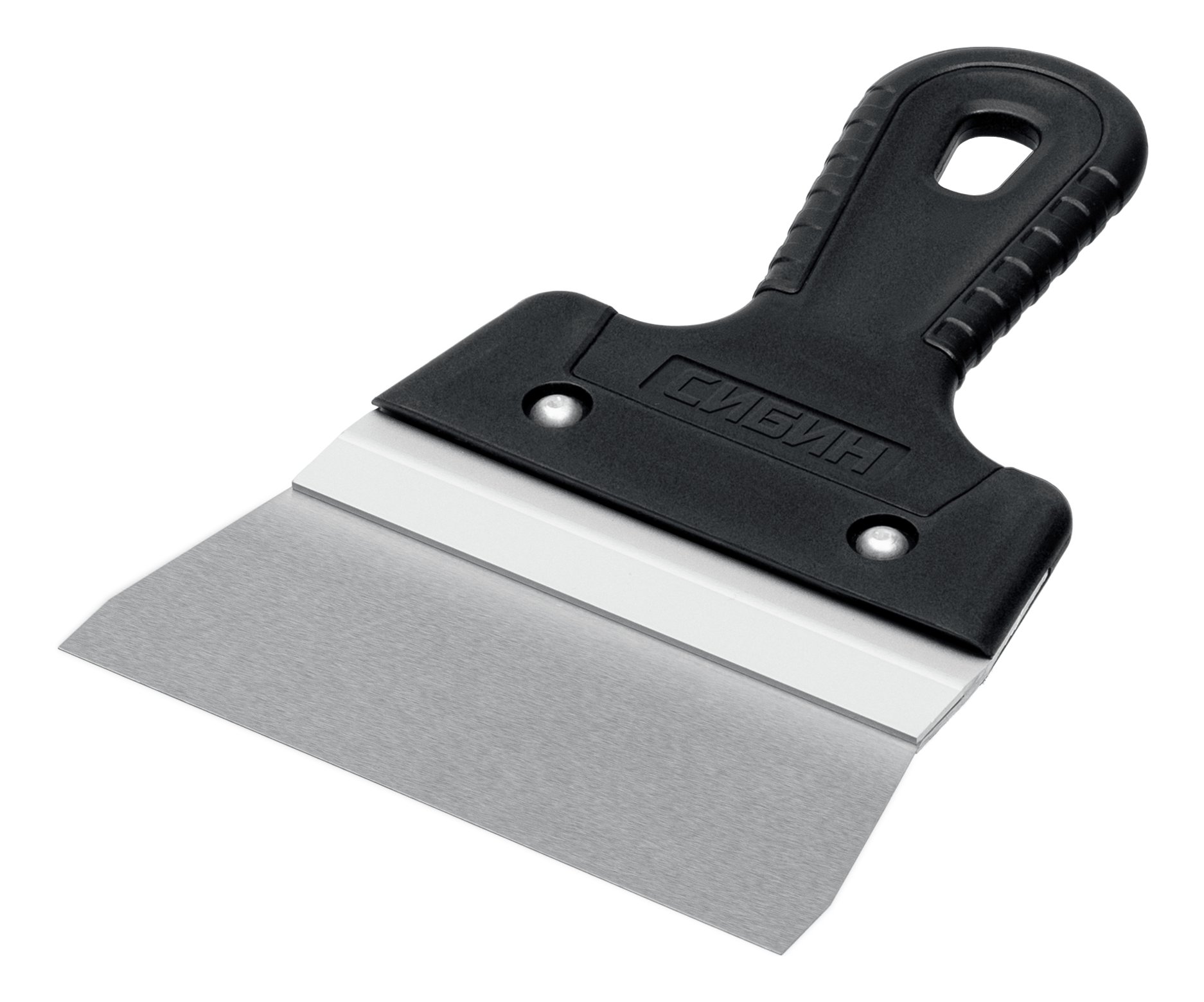 Шпатель СИБИН - отличный выбор для строительства и ремонта! Полотно из нержавеющей стали обеспечивает надежность и долгий срок службы инструмента, алюминиевая направляющая предотвращает изгиб полотна, а эргономичная однокомпонентная рукоятка создает условия для комфортной работы.