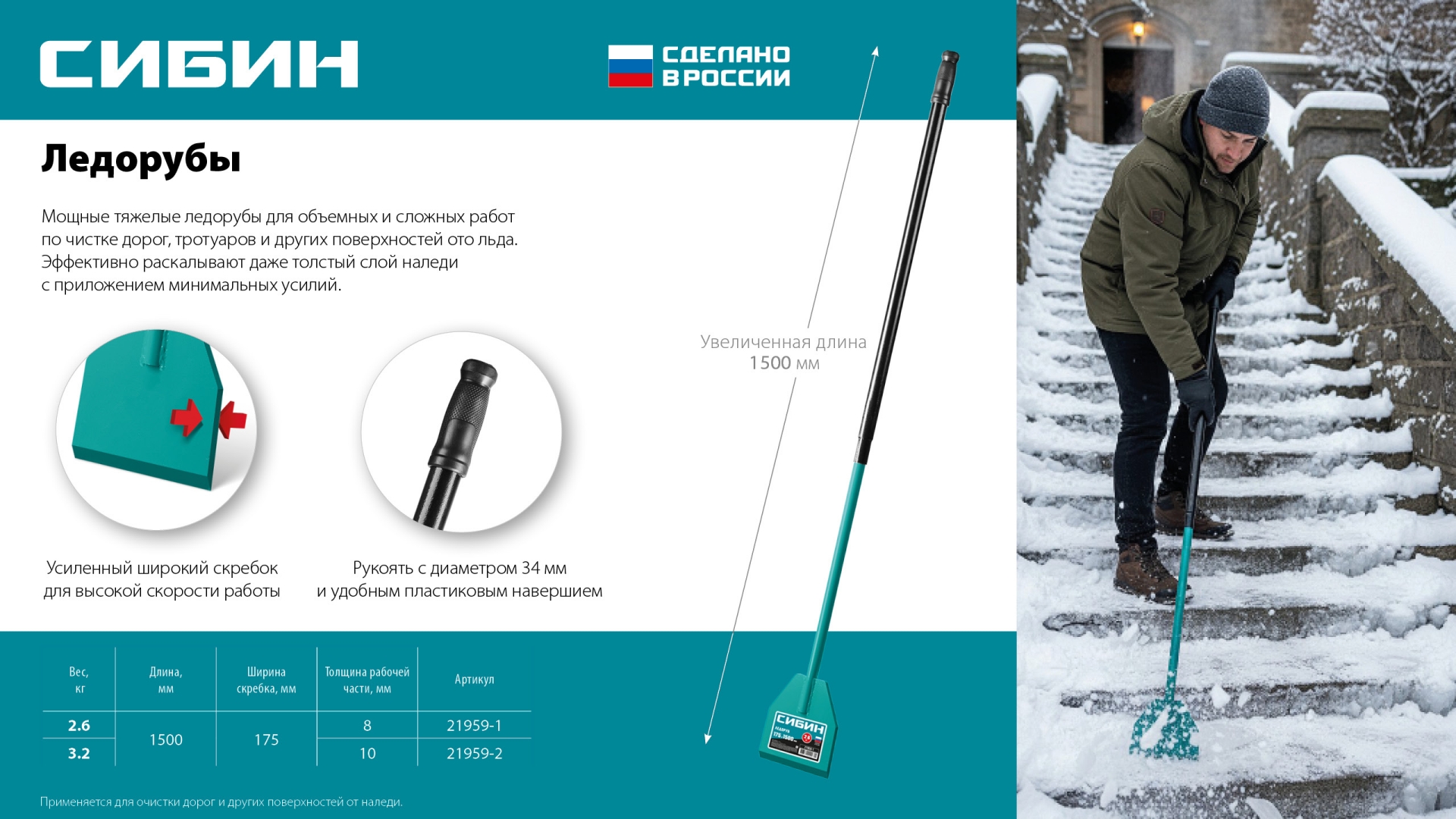 Удобный качественный инструмент для откалывания льда при очистке дорог, тротуаров и других поверхностей