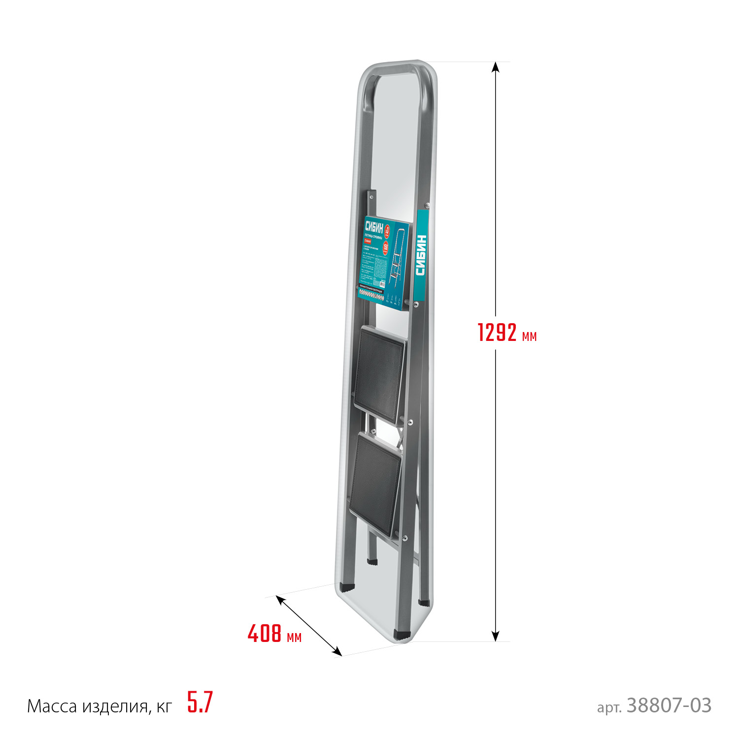 СИБИН 3 ступени, 71 см, c широкими обрезиненными ступенями, стальная стремянка (38807-03)
