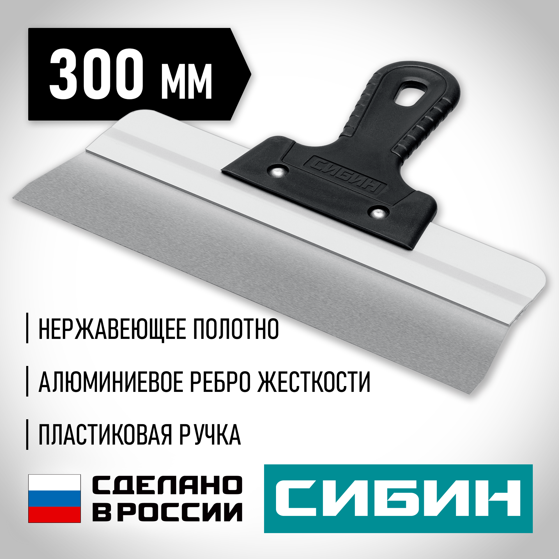 Шпатель СИБИН - отличный выбор для строительства и ремонта! Полотно из нержавеющей стали обеспечивает надежность и долгий срок службы инструмента, алюминиевая направляющая предотвращает изгиб полотна, а эргономичная однокомпонентная рукоятка создает условия для комфортной работы.