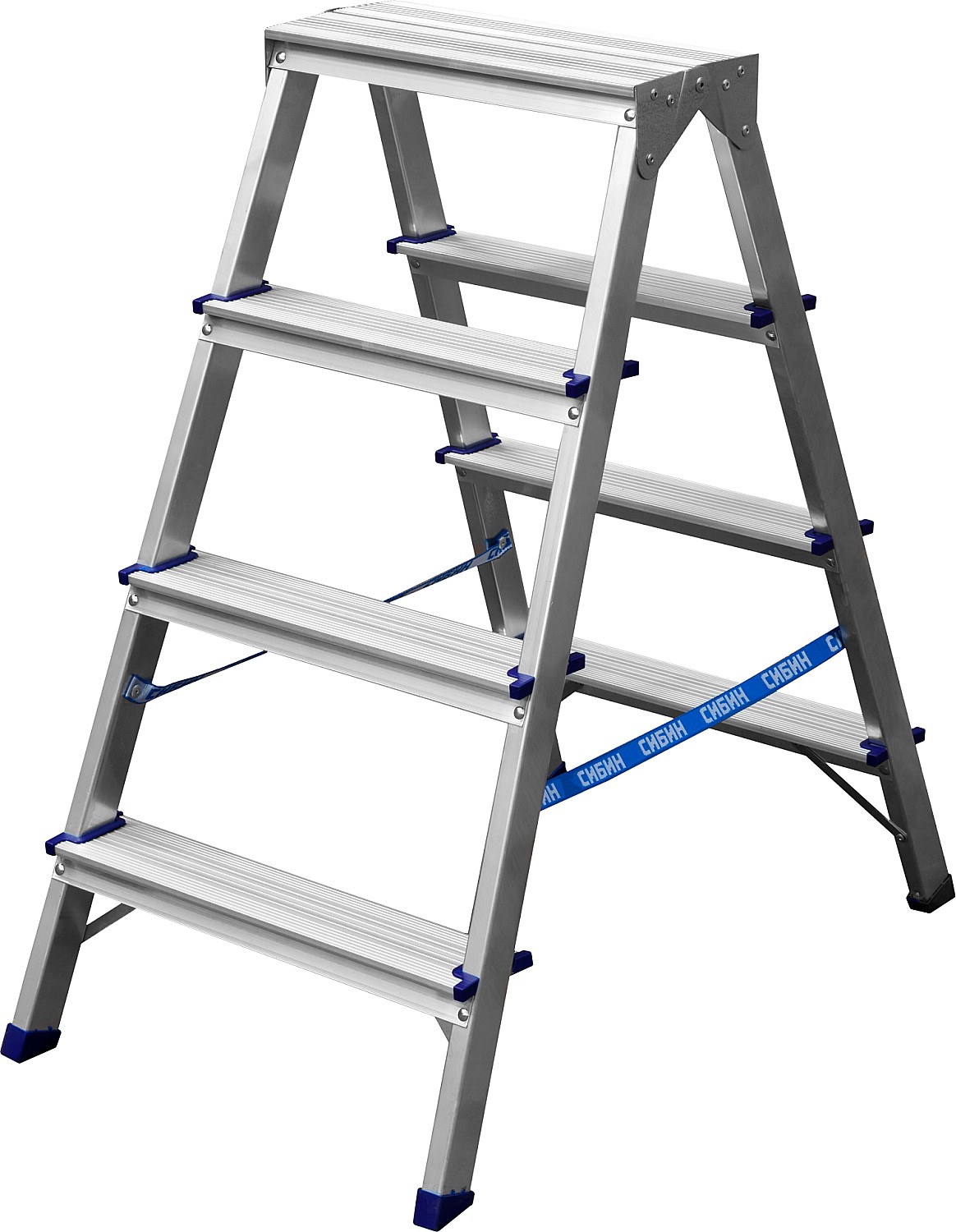 СИБИН 4 ступени, алюминиевая, двухсторонняя стремянка (38825-04)