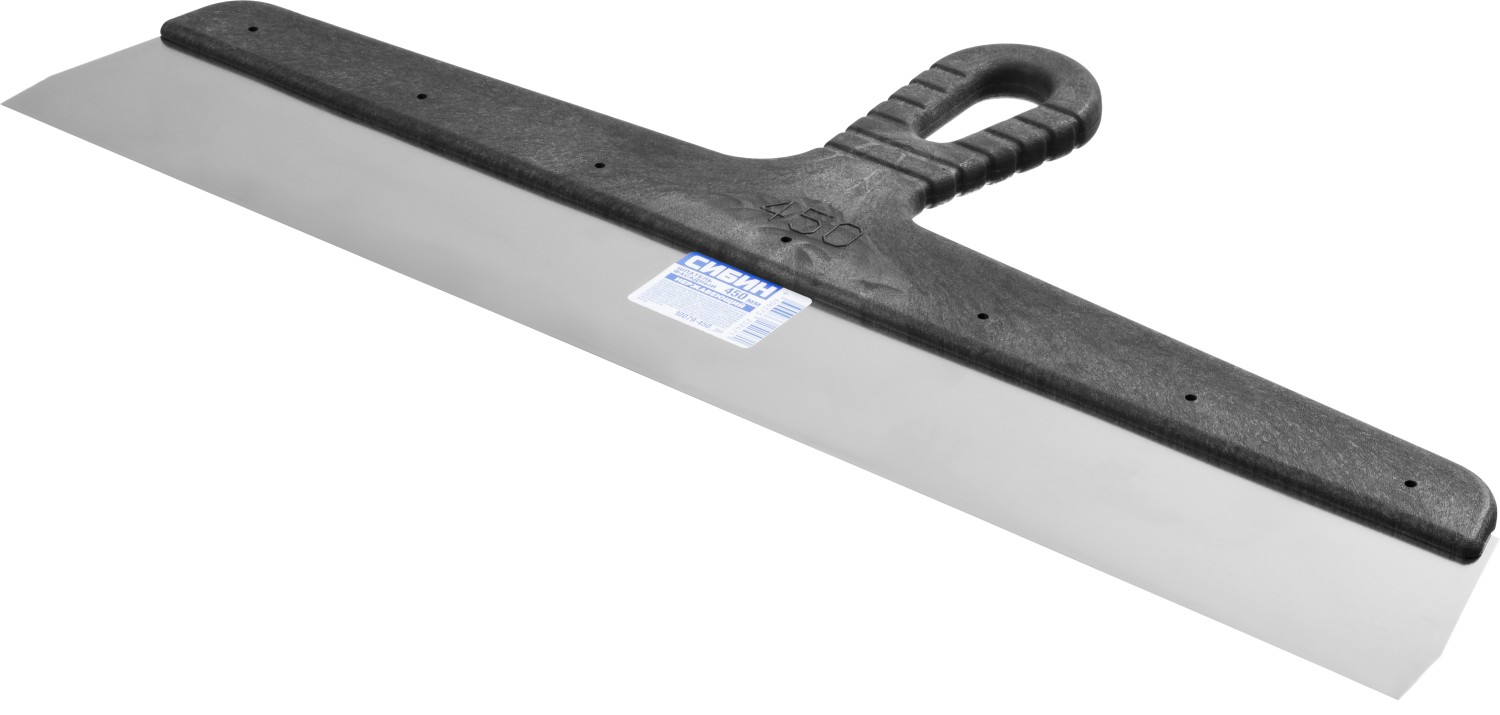Шпатель СИБИН - отличный выбор для строительства и ремонта! Полотно из нержавеющей стали обеспечивает надежность и долгий срок службы инструмента, а удобная пластмассовая рукоятка создает условия для комфортной работы. Незаменимый инструмент при проведении работ на больших поверхностях.