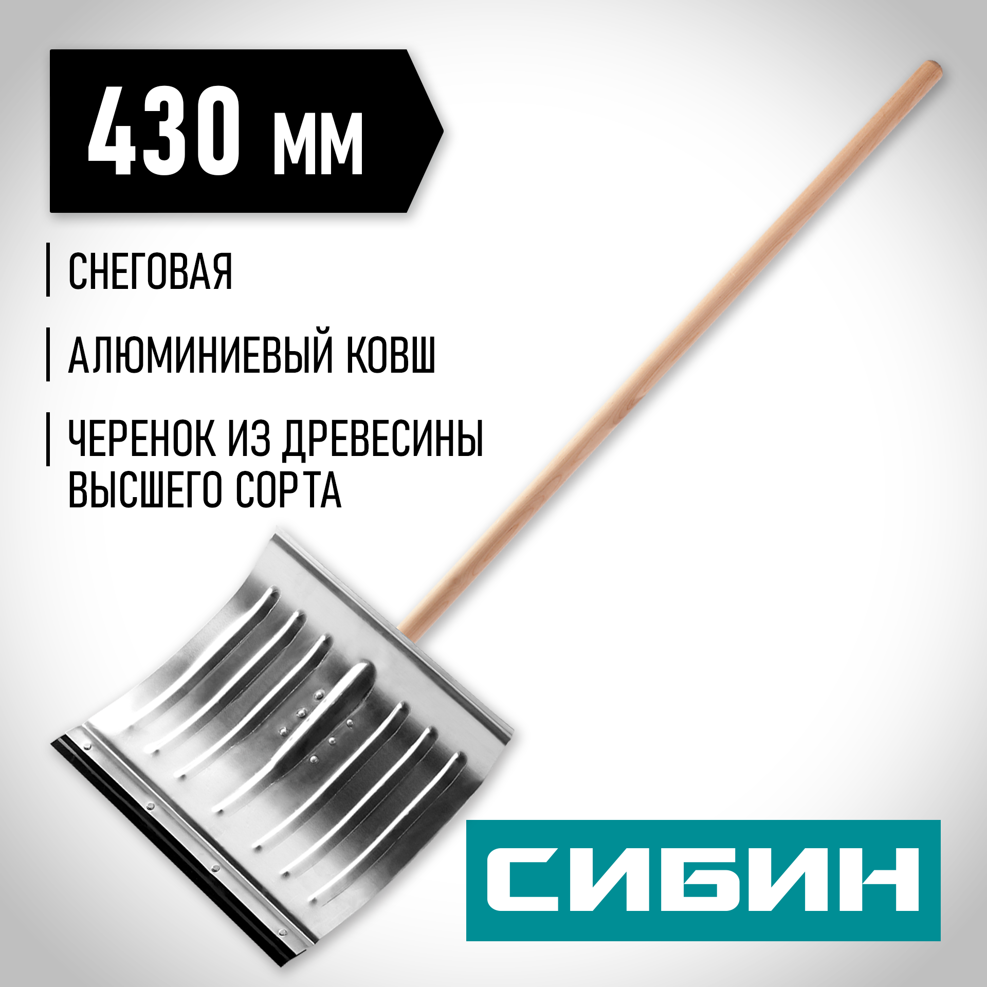 СИБИН ЛА-430, снеговая лопата, деревянный черенок, алюминиевый ковш 430мм (421857)