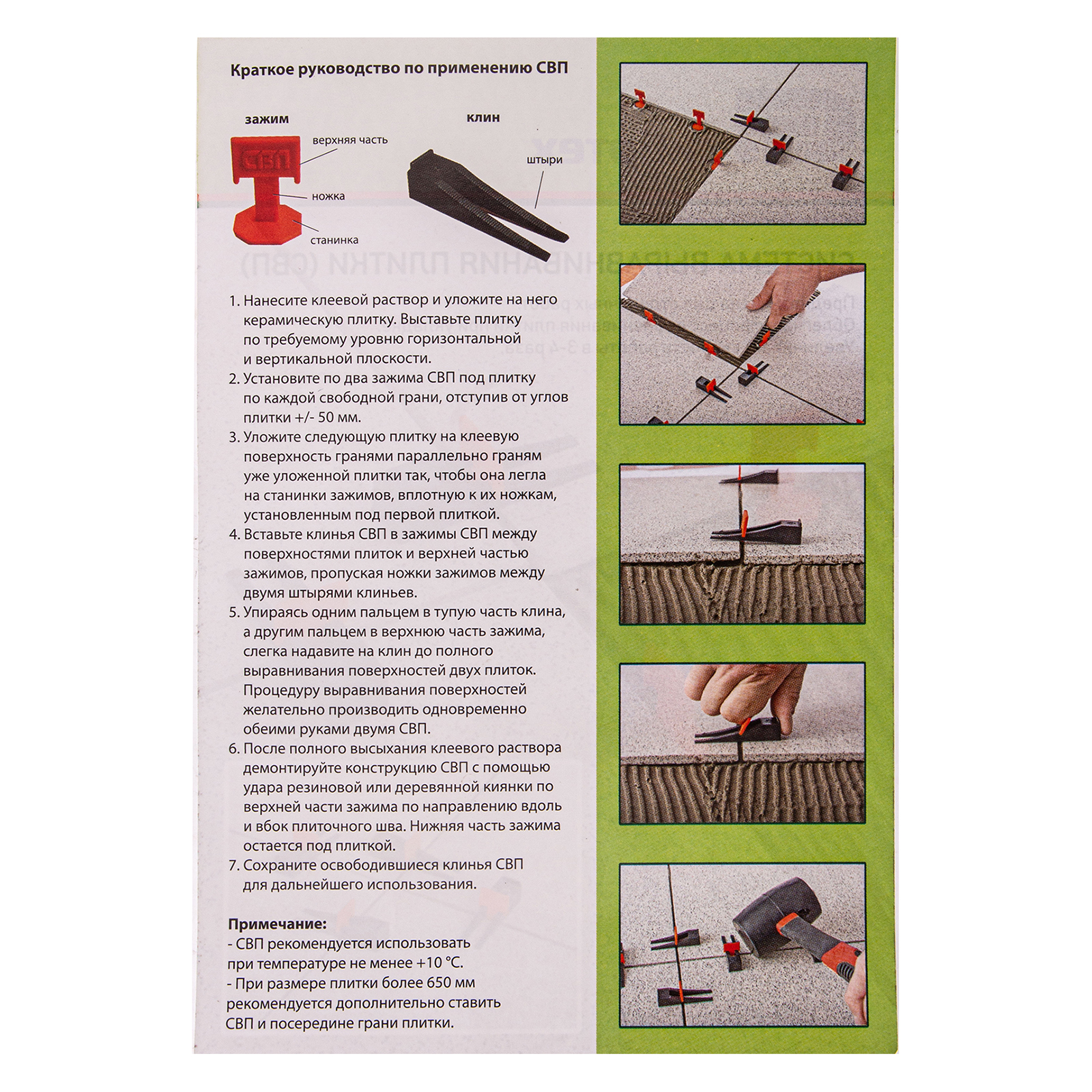 - Высокая скорость работы — выравнивание плитки происходит гораздо быстрее по сравнению с методом, при котором СВП не применяется.