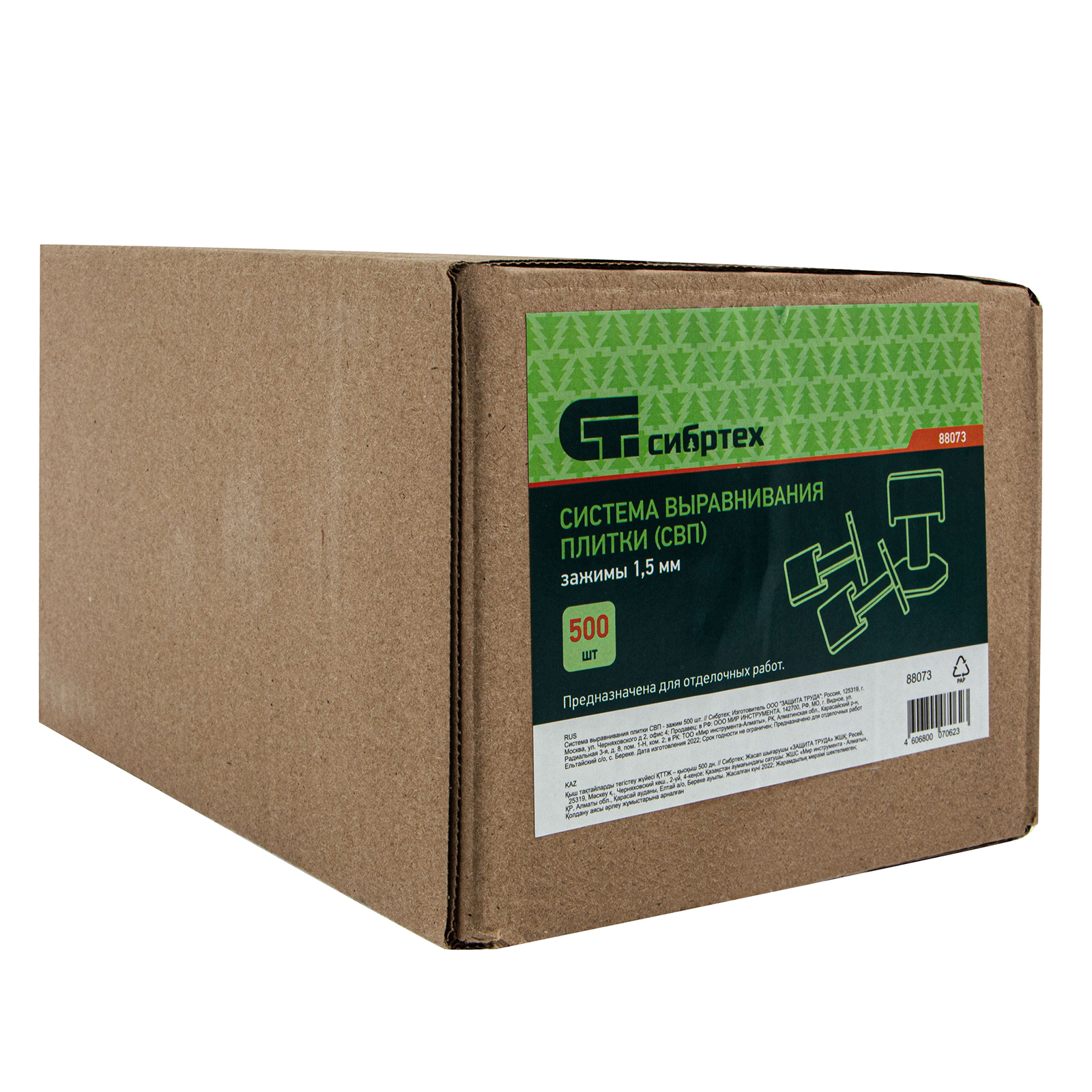Система выравнивания плитки (СВП) Сибртех 88073 состоит из зажимов (500 шт.), используемых совместно с клиньями. Изделия позволяют добиться качественного результата за счет того, что межплиточные швы получаются ровными и аккуратными, керамическая или керамогранитная плитка не смещается, а клей распределяется равномерно. Зажимы для плитки (СВП) предназначены для формирования швов 1,5-1,7 мм.