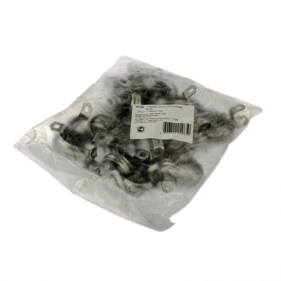 Двухлапковая металлическая скоба (СМД) Сибртех 48195 диаметром 38 мм, 50 шт. в комплекте, используется для крепления труб, проводов и шлангов на различных строительных конструкциях, имеющих 2 параллельных ряда крепежных отверстий. Обеспечивает надежную фиксацию даже под воздействием сильных вибраций и сдвигающих нагрузок.
