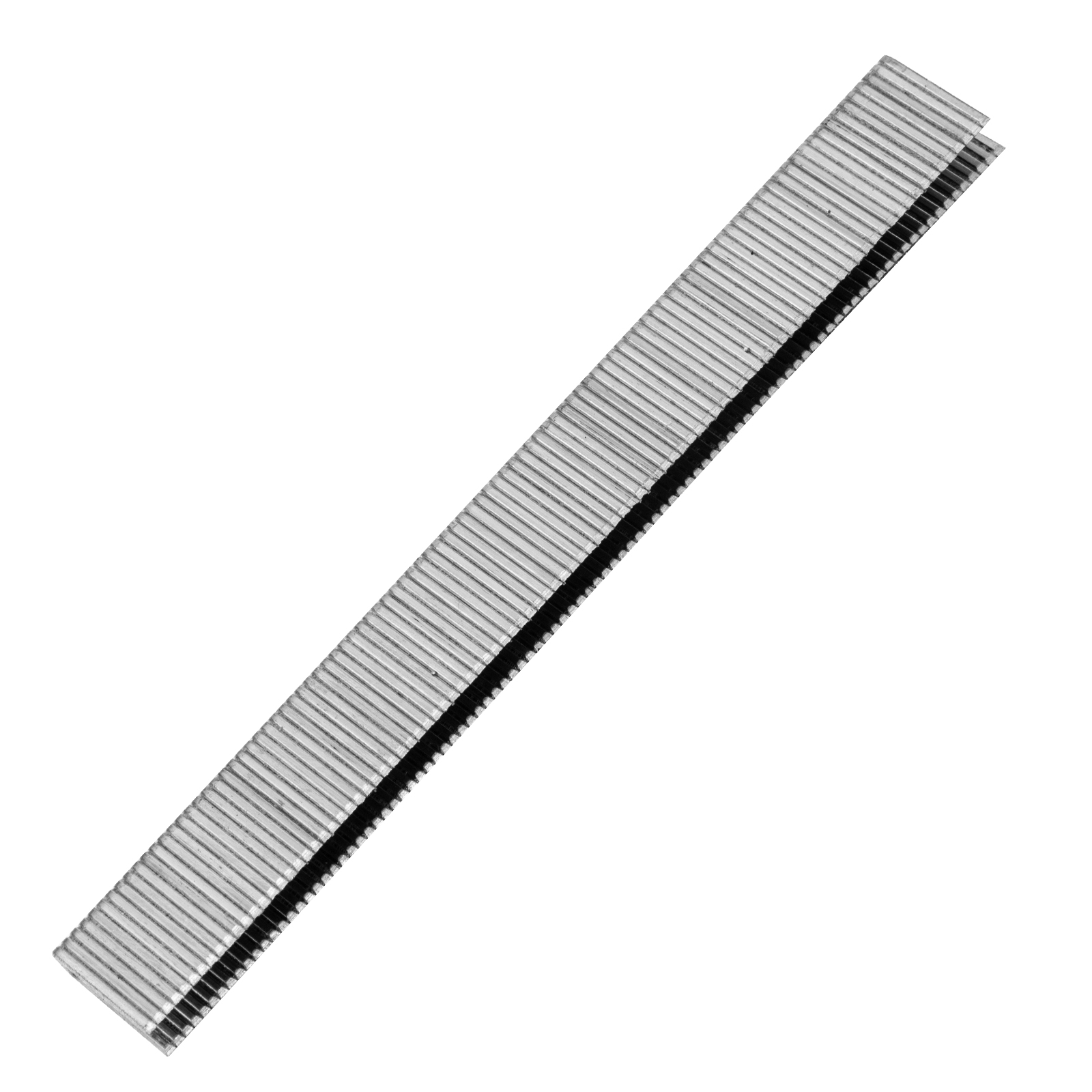 <p>Скобы Matrix 57653 типа 18GA, 5000 шт. в упаковке, подходят к пневматическим степлерам, совместимым с крепежами сечением 1,25 х 1,0 мм, длиной 16 и шириной 5,7 мм. Их используют для фиксации ткани, бумаги, пластиковых и деревянных деталей на деревянных поверхностях. Скобы пригодятся для ремонтных и отделочных работ.</p><h2>Преимущества</h2><ul><li>Прочность и коррозионная стойкость — скобы изготовлены из стали твердостью 310 HV и имеют предел прочности при растяжении 1100 Н/мм², а цинковое покрытие защищает их от воздействия влаги.</li><li>Эффективная работа — скобы с заостренными концами легко пробивают даже твердые материалы.</li><li>Продуманная комплектация — крепежи, склеенные в блоки, не рассыпаются, а упаковки из 5000 шт. хватит надолго.</li></ul>
