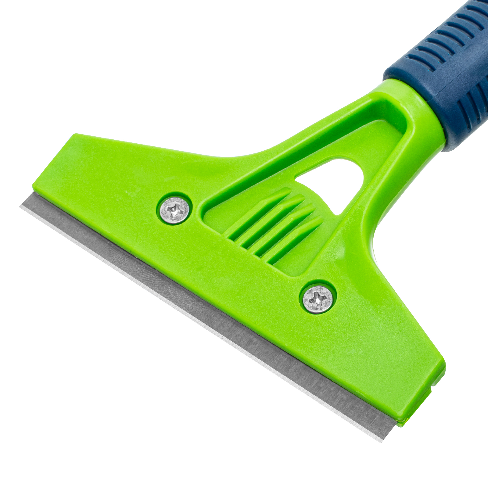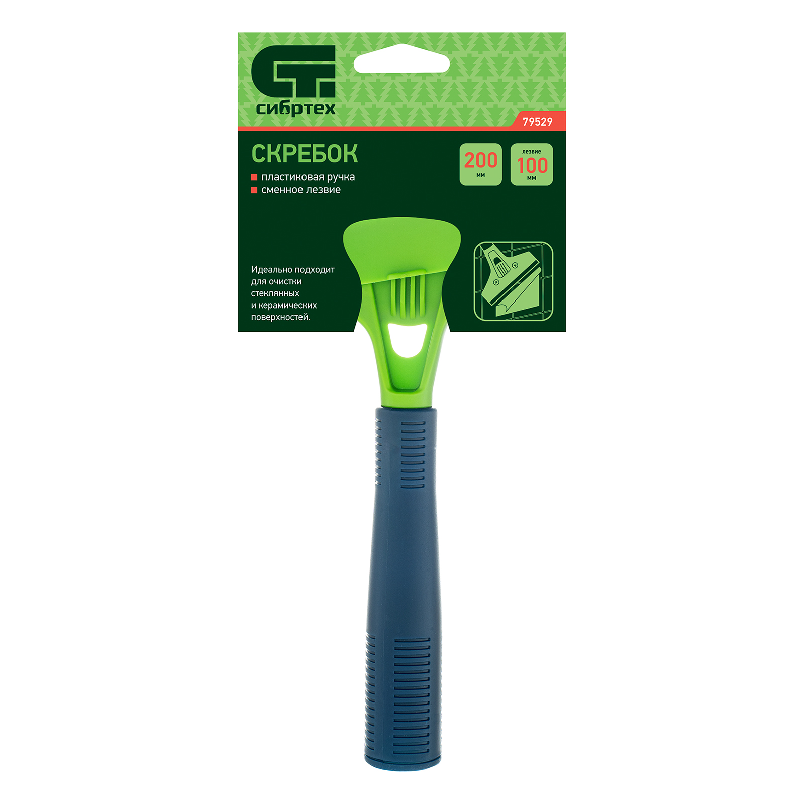 Скребок Сибртех 79529 длиной 200 мм, с лезвием шириной 100 мм и пластиковой рукояткой, — ручной инструмент для удаления старых лакокрасочных покрытий и загрязнений с керамических, стеклянных, металлических и прочих гладких поверхностей. Имеет двустороннее лезвие, острая сторона которого облегчает снятие остатков краски и лака, монтажной пены, удаление наклеек и жевательной резинки. Тупая сторона позволяет использовать скребок для удаления герметика, строительных смесей, шпаклевки и цемента. Изношенное полотно можно заменить. Скребок пригодится во время ремонта, а также будет полезен в быту.