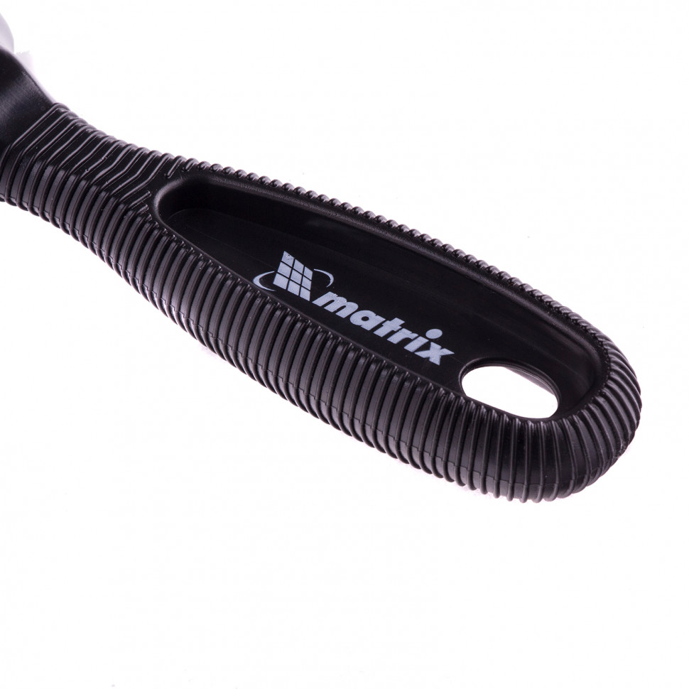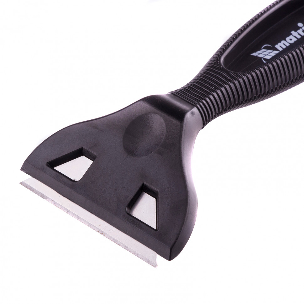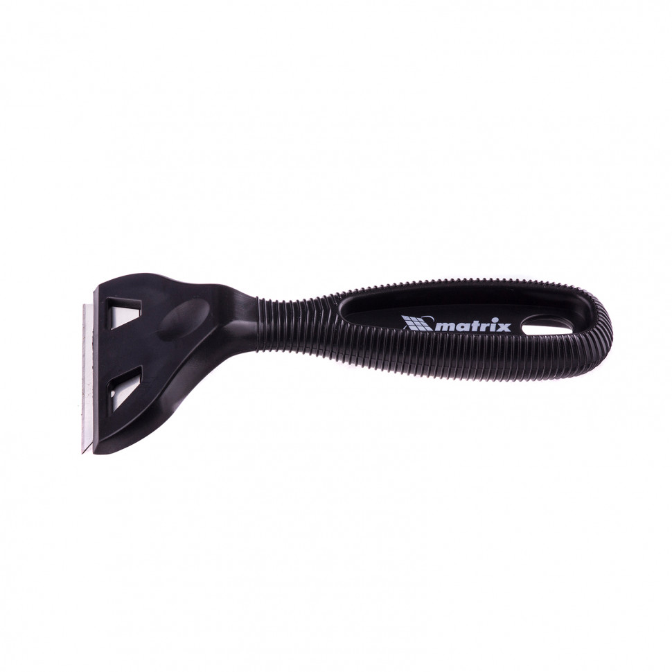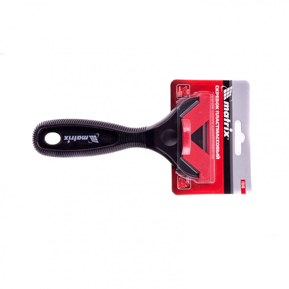 Пластмассовый скребок Matrix 79546 с трапециевидным сменным лезвием — инструмент для очищения гладких поверхностей от загрязнений, остатков краски и других покрытий. Предусмотрена возможность замены лезвия, поэтому в случае износа режущей кромки не нужно приобретать новый инструмент. Скребок используется для выполнения ремонтных и отделочных работ, а также полезен в быту.