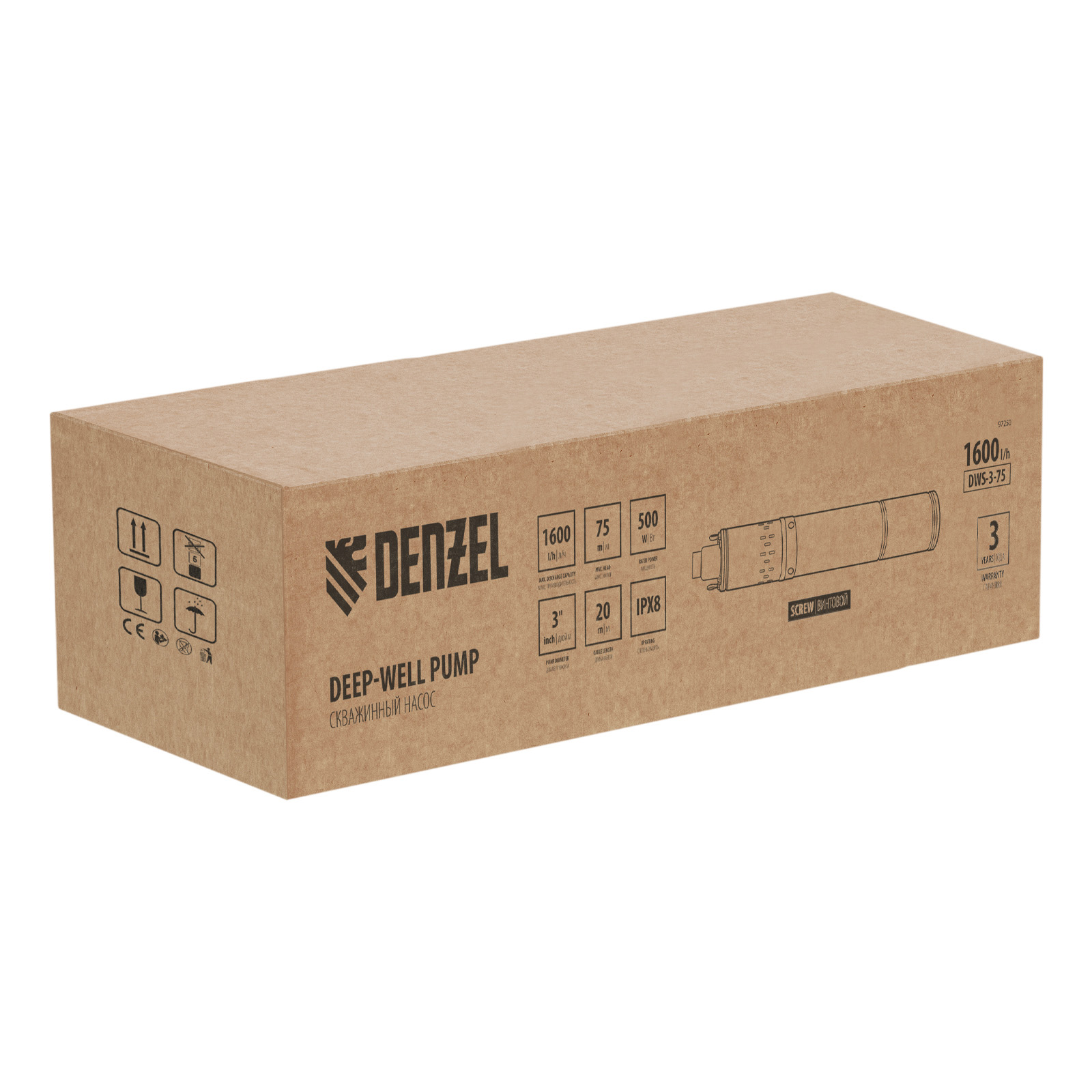 Винтовой скважинный насос Denzel DWS-3-75 97250 диаметром 3 дюйма потребляет мощность 500 Вт, перекачивает воду со скоростью 1600 л/ч и обеспечивает напор до 75 м. Предназначен для подъема чистой воды с глубины до 80 м из скважин и колодцев. Используется для организации систем водоснабжения и полива на даче, садовом участке или в загородном доме.