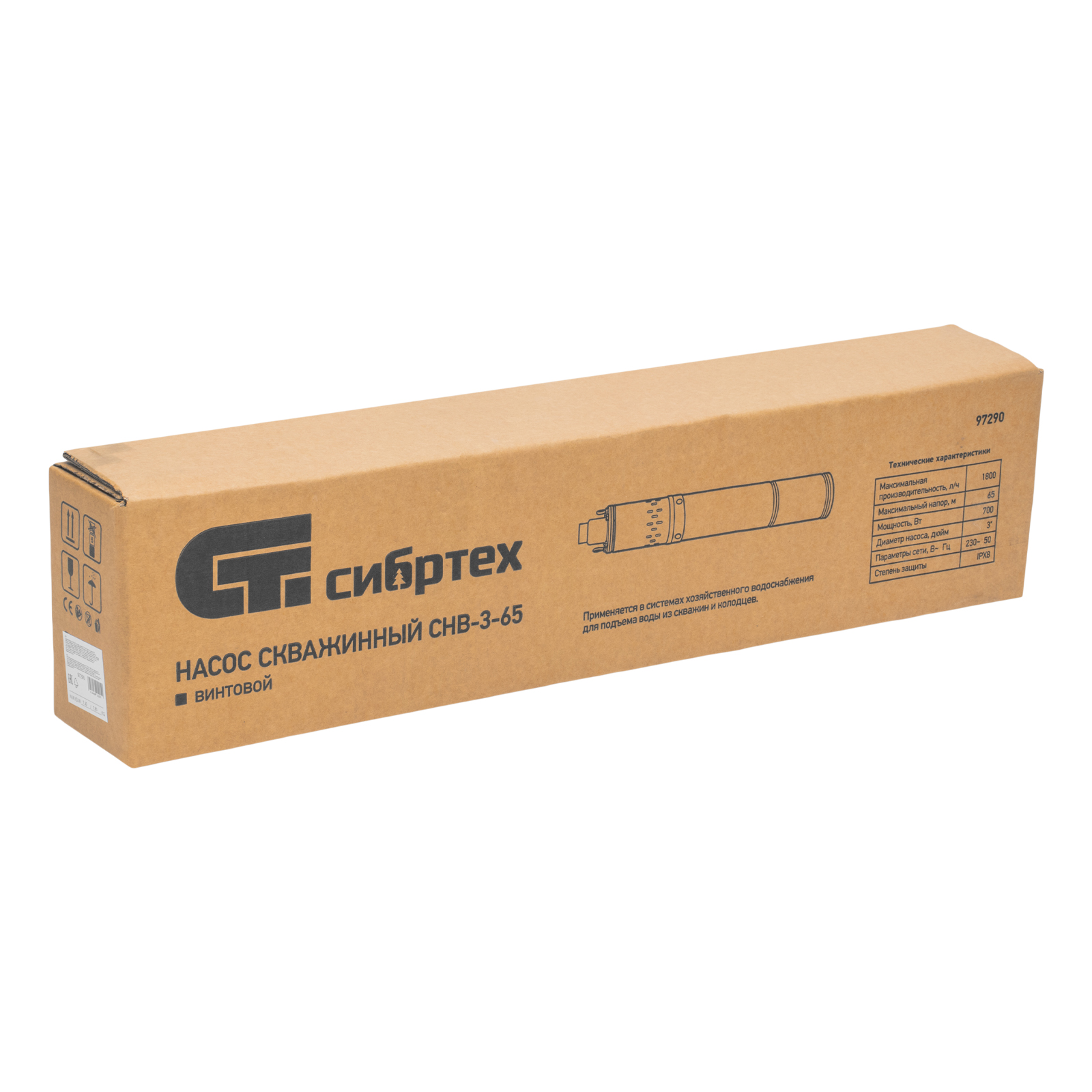 Скважинный винтовой насос Сибртех СНВ-3-65 97290 мощностью 700 Вт, диаметром 3", обеспечивает напор до 65 м и способен перекачивать 1800 литров жидкости в час. Предназначен для подъема чистой воды из скважин и колодцев глубиной до 80 м. Насос позволяет организовать систему водоснабжения и полива на даче, садовом участке или в загородном доме.