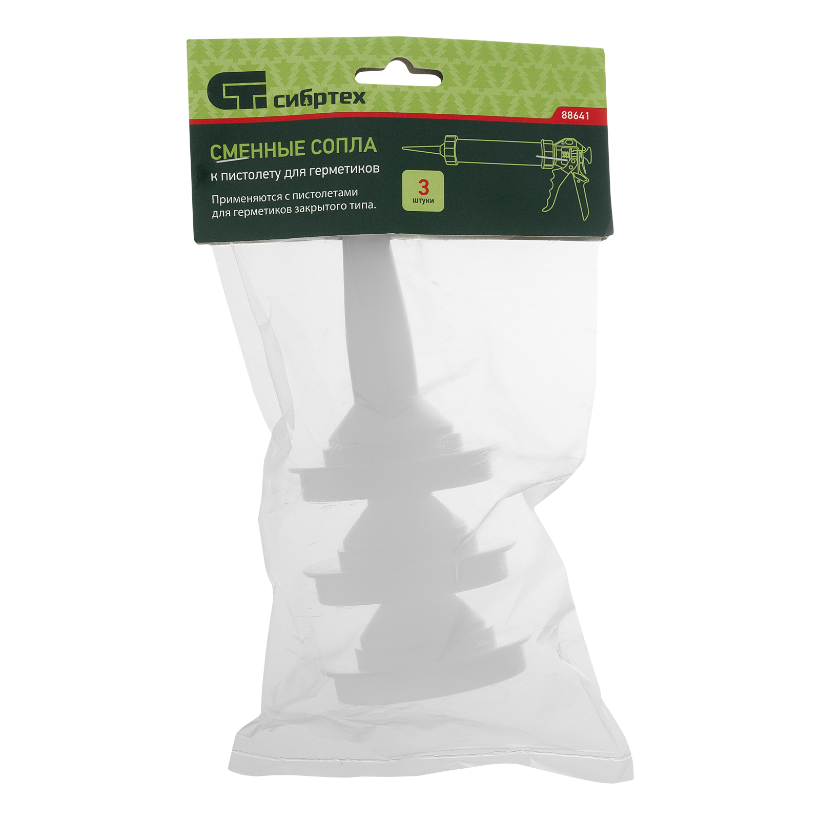 Сменные сопла к пистолету Сибртех 88641, 3 шт. в упаковке, позволяют точно дозировать и равномерно наносить герметик. Изделия совместимы с пистолетами закрытого типа 886475 и 886485. Благодаря конусообразной форме удобны для нанесения состава на стыках стен с ванной или раковиной, заполнения трещин и щелей в углах и труднодоступных местах. Пригодятся во время выполнения ремонтных и сантехнических работ.