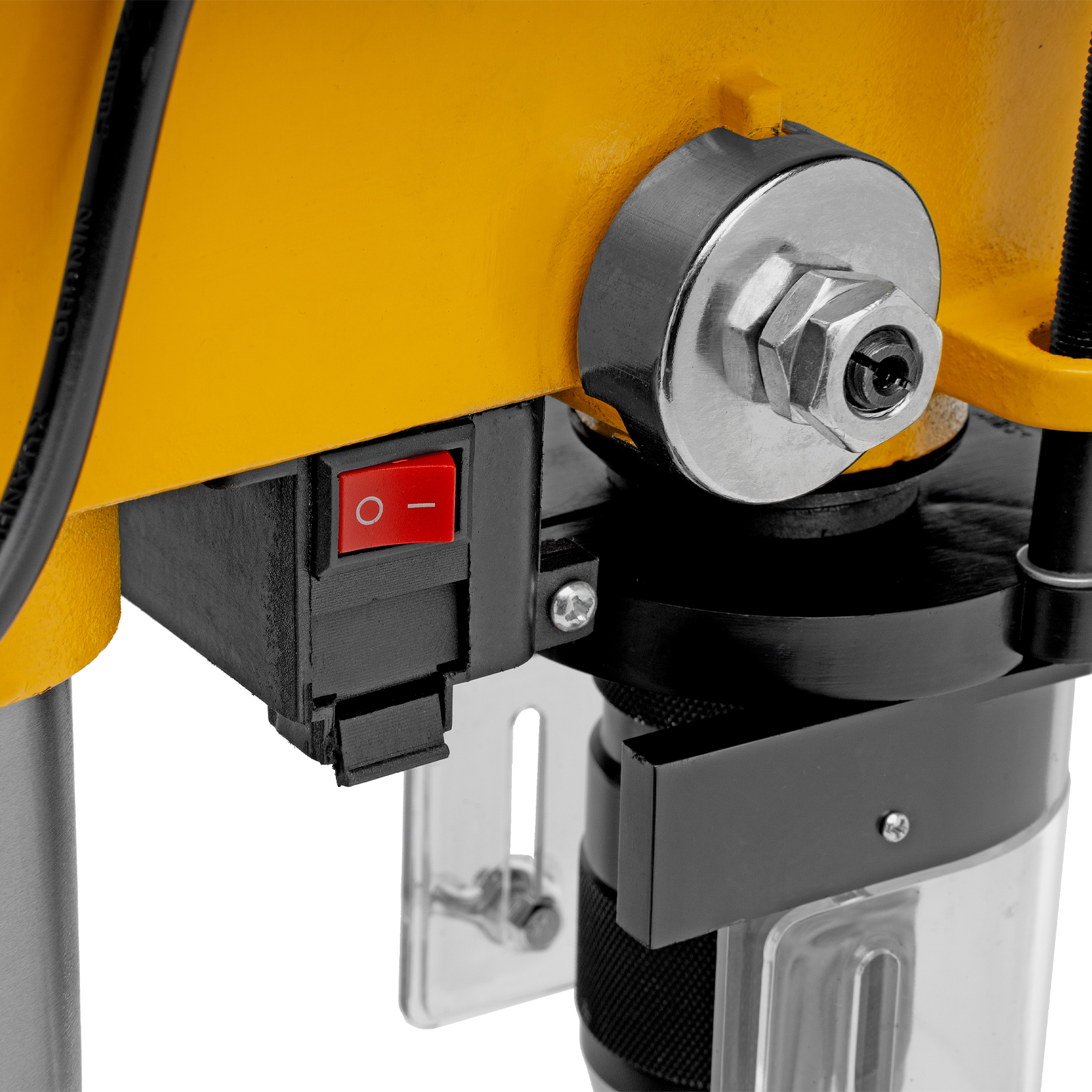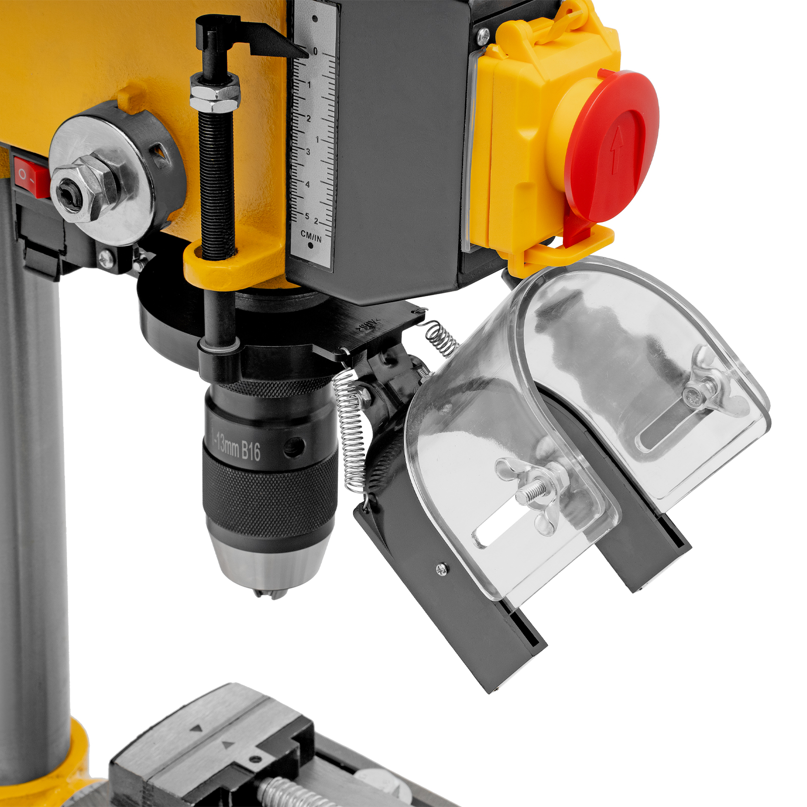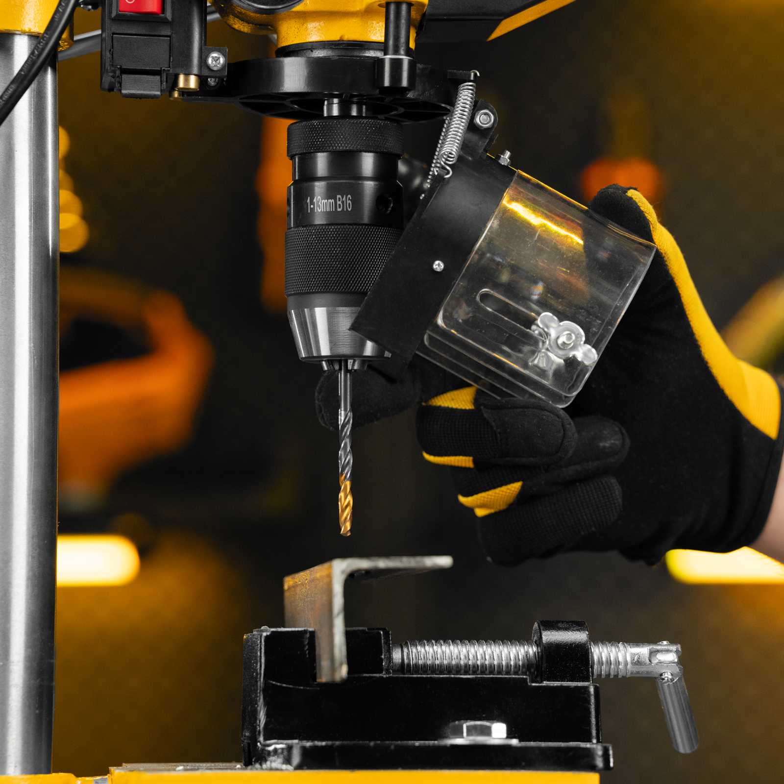 - Безопасность пользователя — прозрачный кожух защищает от вылетающей стружки во время сверления.