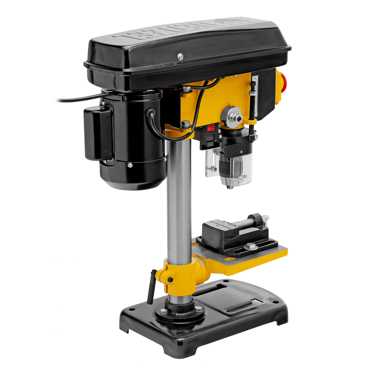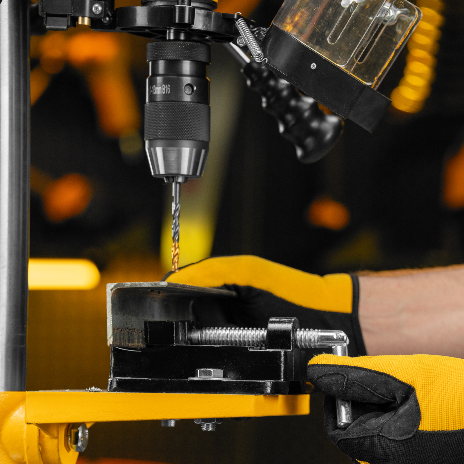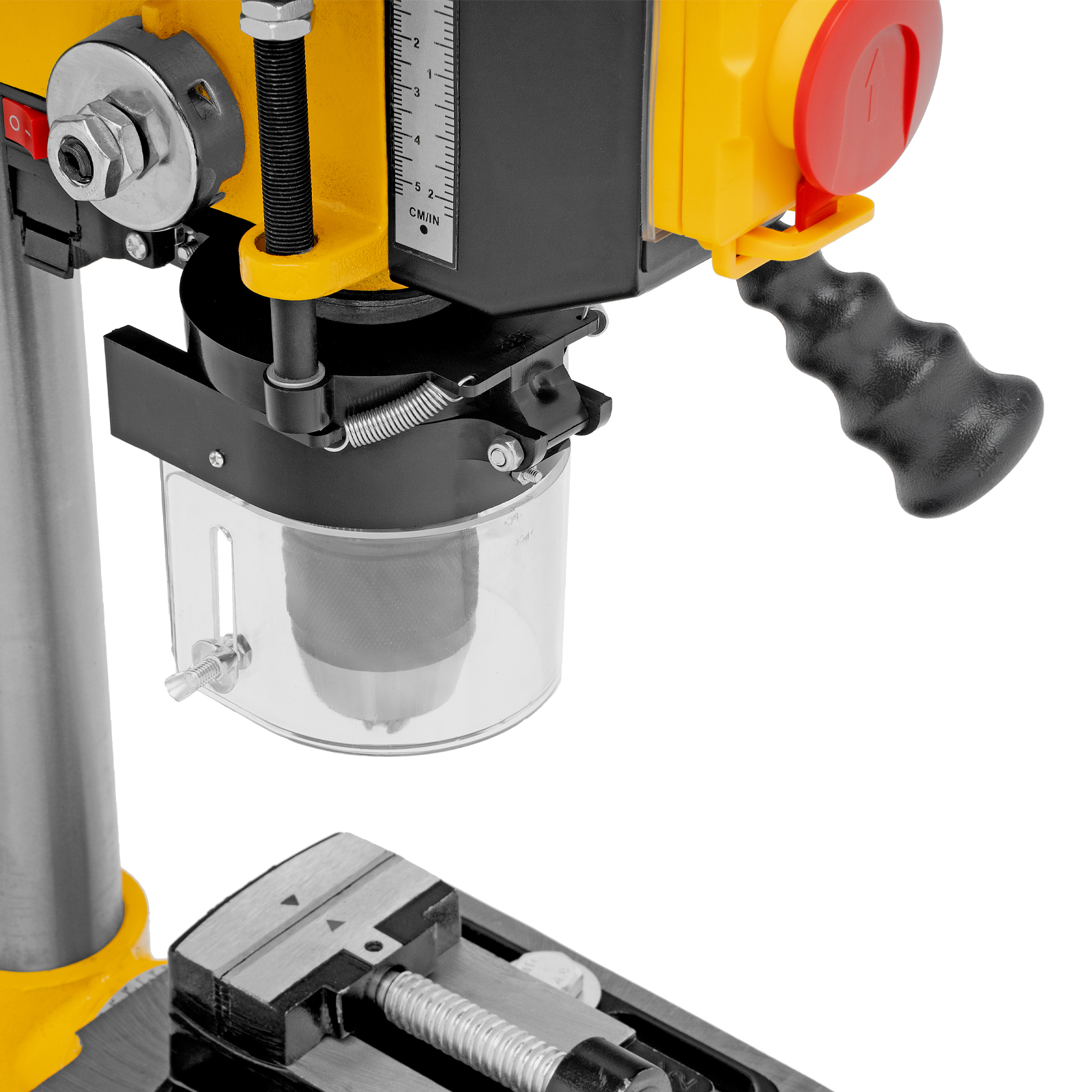 - Безопасность пользователя — прозрачный кожух защищает от вылетающей стружки во время сверления.