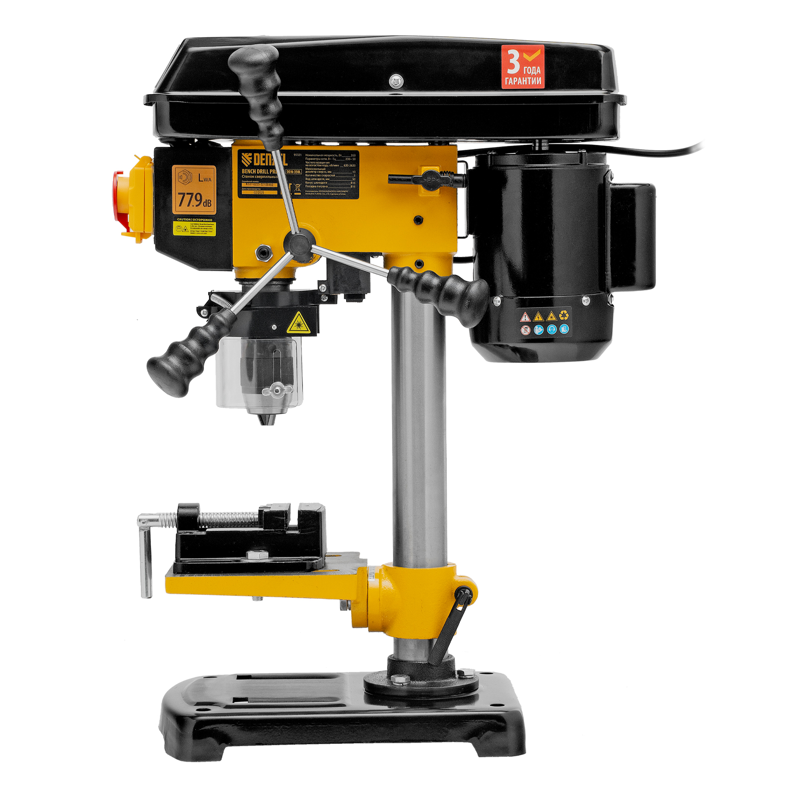 Настольный сверлильный станок Denzel DDM-350L 95321 мощностью 350 Вт поддерживает 5 уровней частоты вращения шпинделя, оснащен лазером и совместим с оснасткой диаметром 1-13 мм. Предназначен для сверления отверстий и шлифования деталей. Ременная передача позволяет успешно решать различные задачи. Повышенная частота вращения шпинделя позволяет эффективно обрабатывать плотные материалы и составляет 620-2620 об/мин, можно установить оптимальную в соответствии с поставленной задачей (предусмотрено 5 уровней). Надежный асинхронный двигатель обеспечивает длительную стабильную работу даже при интенсивном использовании. Станок пригодится в мастерской и гараже.