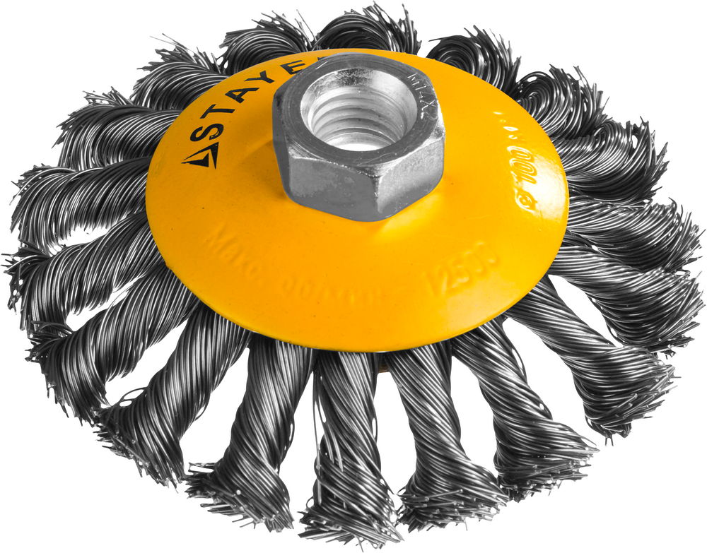 STAYER 100 мм, жгутированная стальная проволока 0.5 мм, коническая щетка-крацовка для УШМ, Professional (35135-100)