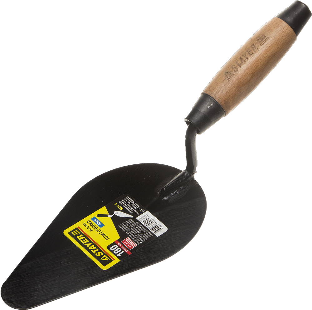 кельма используется для нанесения строительных растворов, стальное полотно обеспечивает прочность конструкции, а деревянная ручка удобство в работе