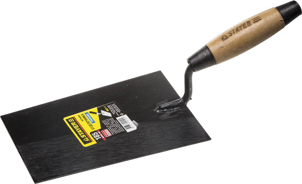 кельма используется для нанесения строительных растворов, стальное полотно обеспечивает прочность конструкции, а деревянная ручка удобство в работе