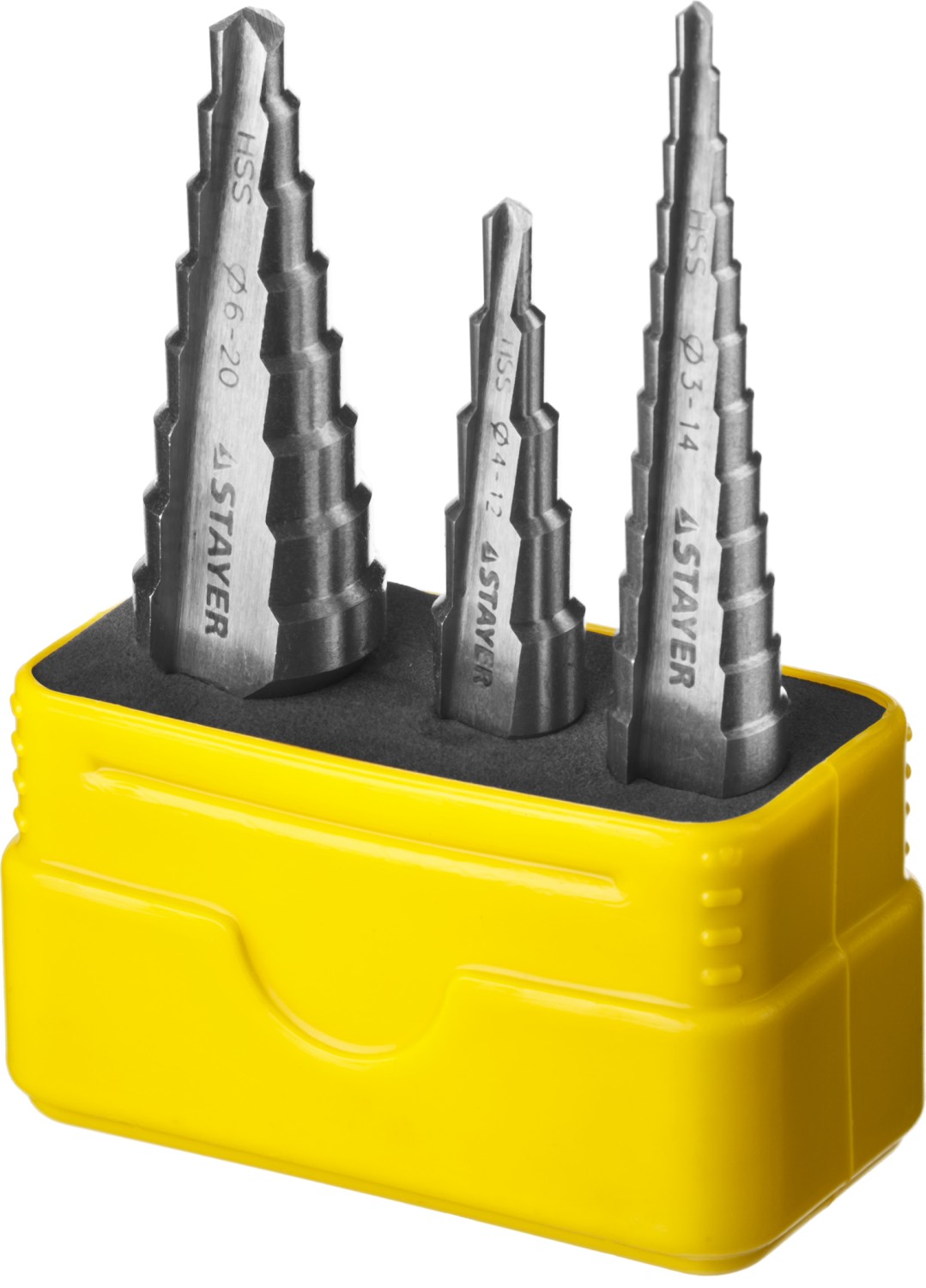 STAYER 3 шт, 3-20 мм, сталь HSS, набор ступенчатых сверл (29660-3-20-H3)