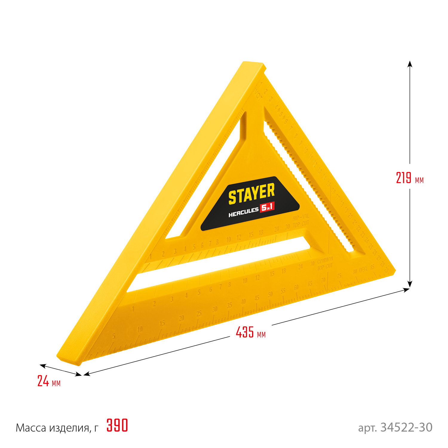 Универсальный кровельный угольник инструмент для точного определения расстояния в диапазоне от 0 до 300 мм. Может применяться в качестве торцовочного угольника, транспортира, рейсмуса и направляющей для пилы.