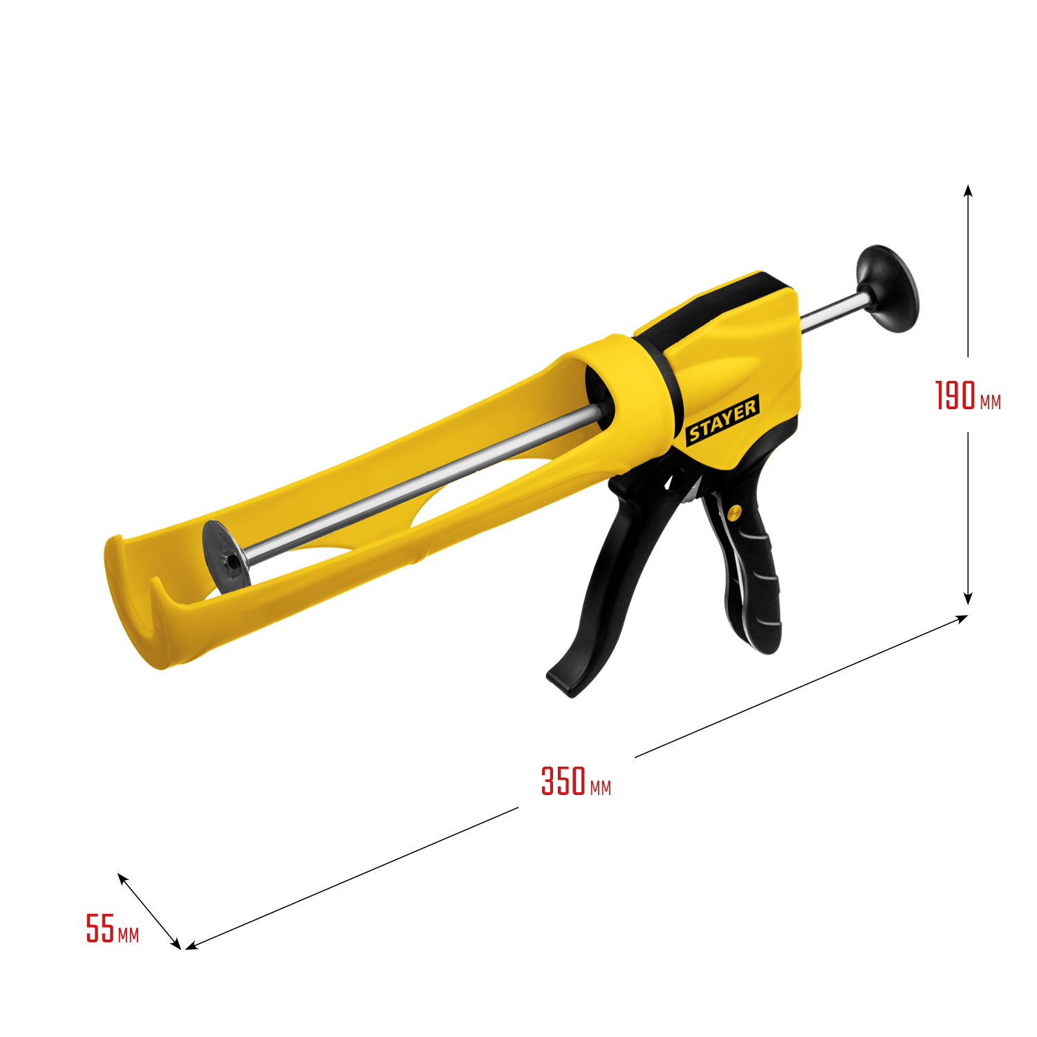Пистолет для герметиков подходит для работы с картриджами объемом 310 мл, имеет полуоткрытый вращающийся корпус, круглый шток из оцинкованной стали и супер легкий корпус из армированного нейлона. Данная спецификация обеспечивает прочность и надежность конструкции пистолета при использовании. Оснащен иглой для удаления застывшего герметика/клея и встроенным резаком для сопла.