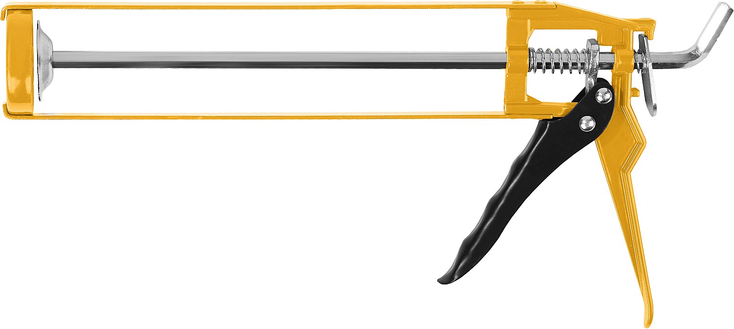 Пистолет для герметиков подходит для работы с картриджами объемом 310 мл, имеет скелетную конструкцию из стали, ручку из алюминиевого сплава, которые способствуют равномерной подачи клея либо герметика. Данная спецификация обеспечивает прочность и надежность конструкции пистолета при использовании.