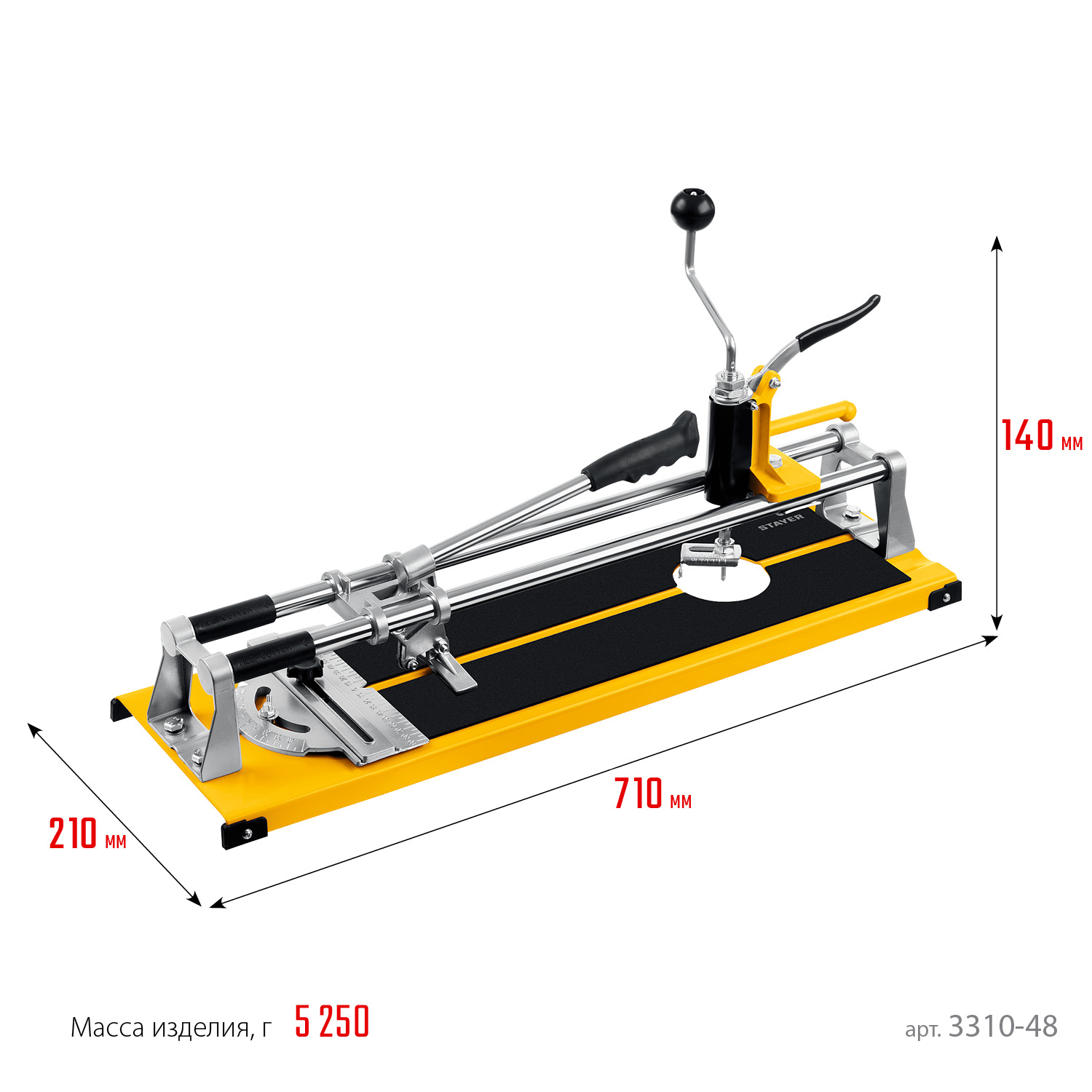 Плиткорез STAYER - правильный выбор! Оснащен сменным твердосплавным режущим элементом, . Металлические направляющие обеспечивают точный и плавный разрез керамической плитки. Усиленная платформа и опоры позволяют проводить работы с керамической плиткой повышенной толщины и увеличивают срок службы плиткореза.