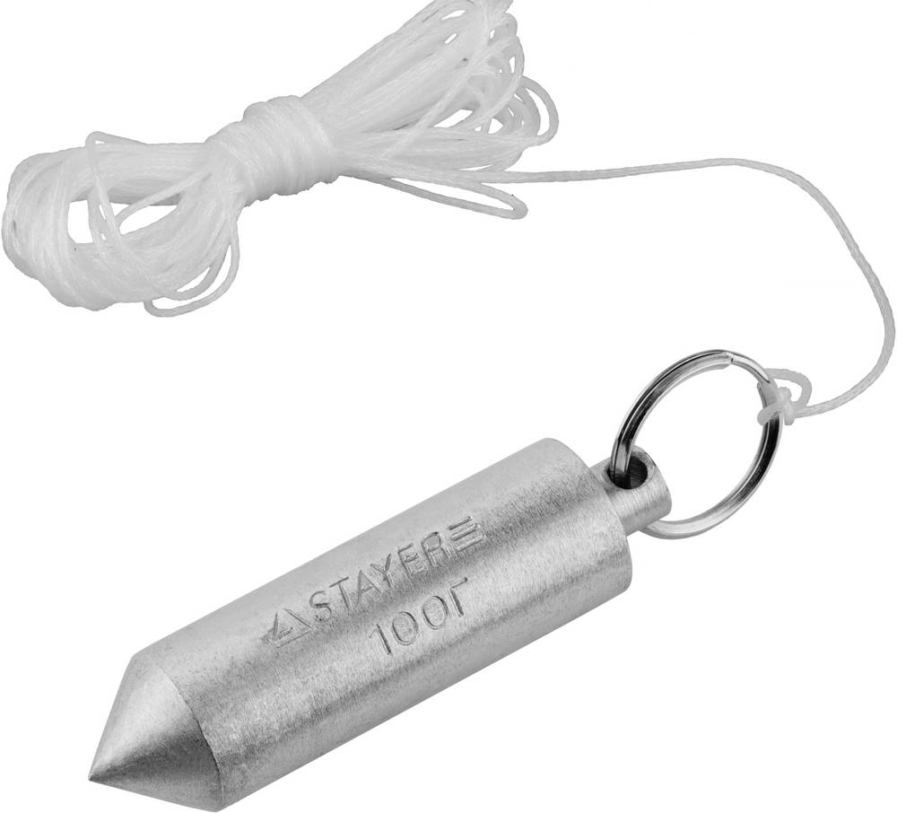 Поверхность отвеса оцинкована для защиты от коррозии,а плетеный шнур уменьшает вращение отвеса.