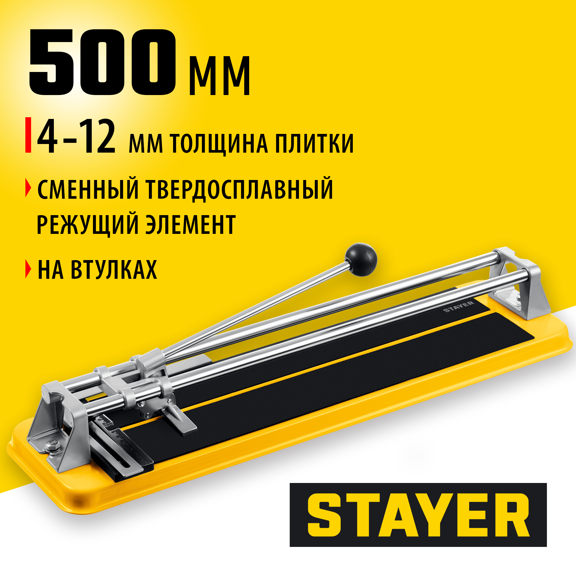 Плиткорез STAYER - правильный выбор! Оснащен сменным твердосплавным режущим элементом. Металлические направляющие обеспечивают точный и плавный разрез плитки.